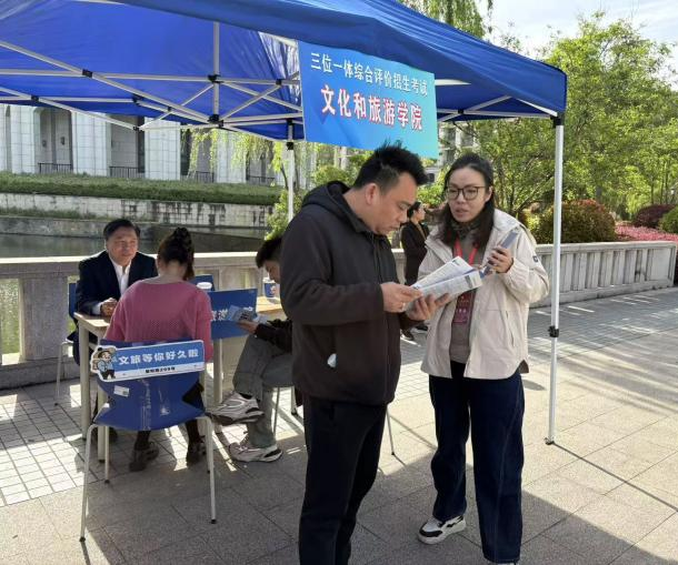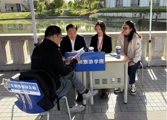 校长、党委副书记张环宙带队,副校长、党委委员柴改英,党委副书记徐勇和学工部、学生处处长陆卫斌等一同来到招生宣传现场,与正在咨询的考生家长交流,了解家长们对浙外的期待,对文旅的兴趣。张校长特别提到,目前在省委、省政府支持下,浙外正与北京大学展开全面合作,泥巴影视 与北大相关学院和机构合作开设了数智赋能文旅人才创新班,并即将推出国际传播赋能文旅人才创新班,为广大学子提供更多学习资源。
