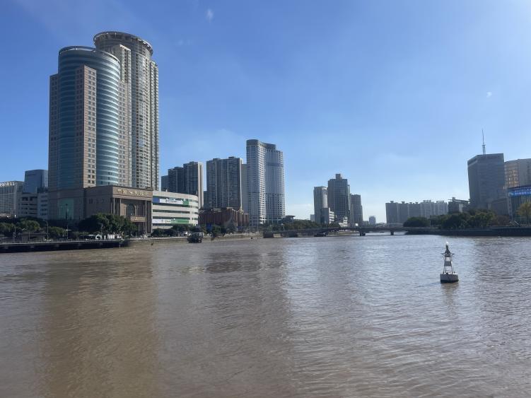 座谈会后,课题组前往宁波三江口,对浙东运河宁波段进行了实地考察。此次考察重点了解了该段运河的当前河道、生态保护措施以及文旅融合发展的现状,课题组成员间交流了运河与城市发展之间的共生互动关系。