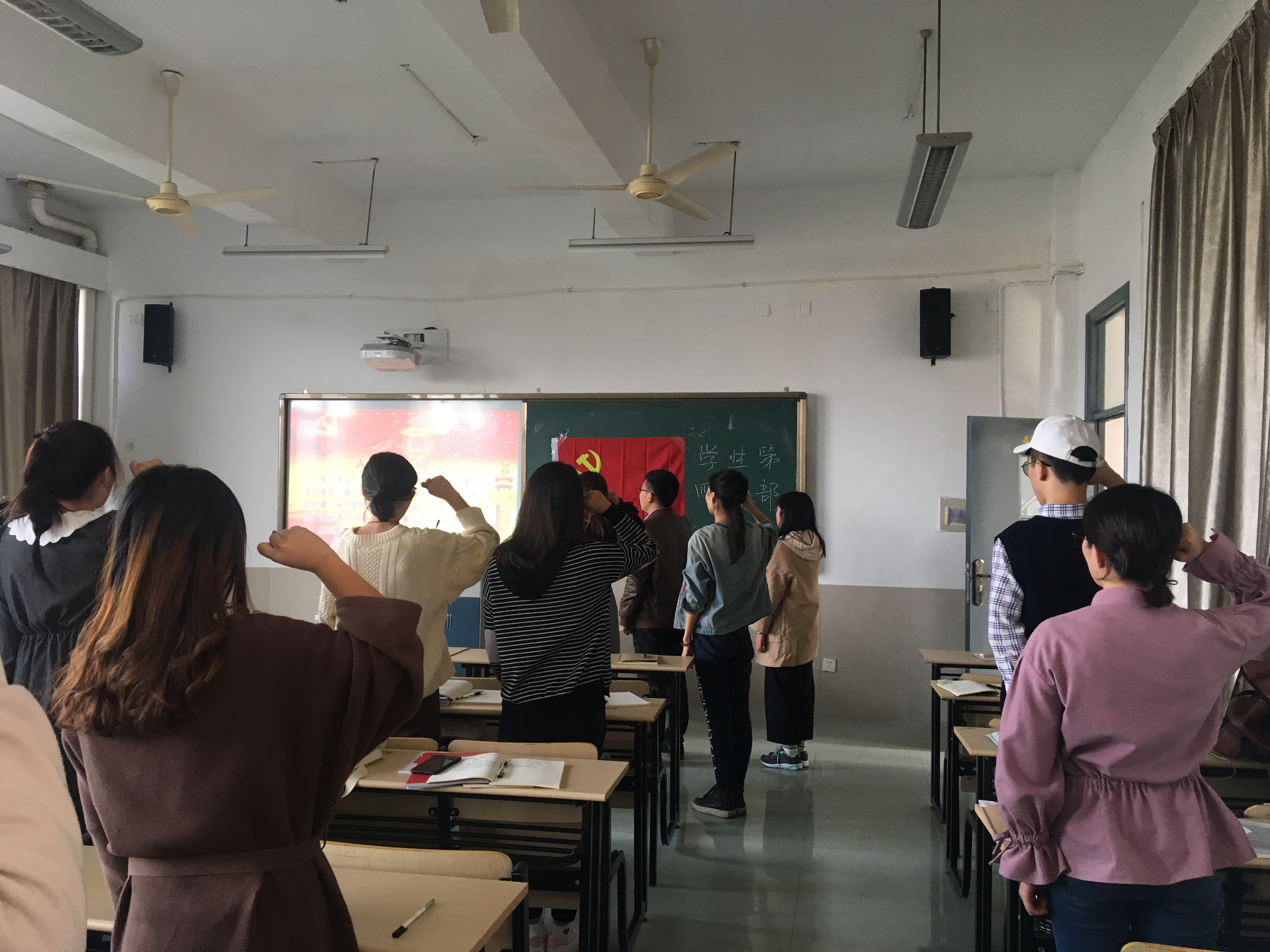 “我志愿加入中国共产党,拥护党的纲领,遵守党的章程,履行党员义务……”在商学院,在望院D的四楼,响起了铿锵有力的声音。