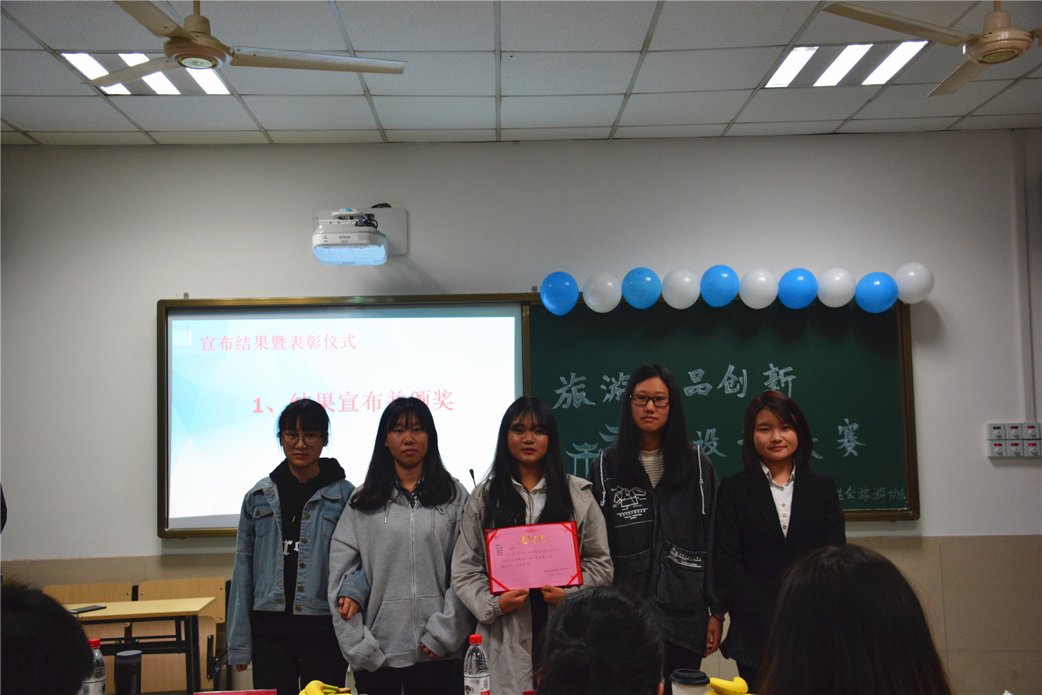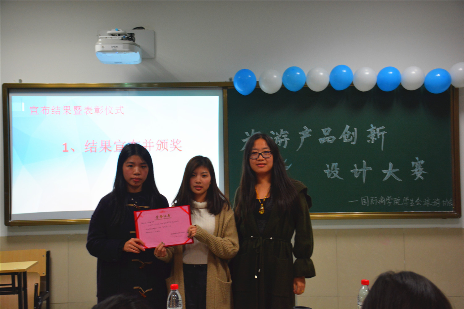 获得本次旅游产品创意设计比赛前三名的依次是:15旅游管理(2)班薛凯妮、王梦梅团队,17意大利语(1)班的马圣卓以及17旅游管理(3)班的李绪琪、张晨钰、杜铭智、钱佳乐、李慧琛团队。