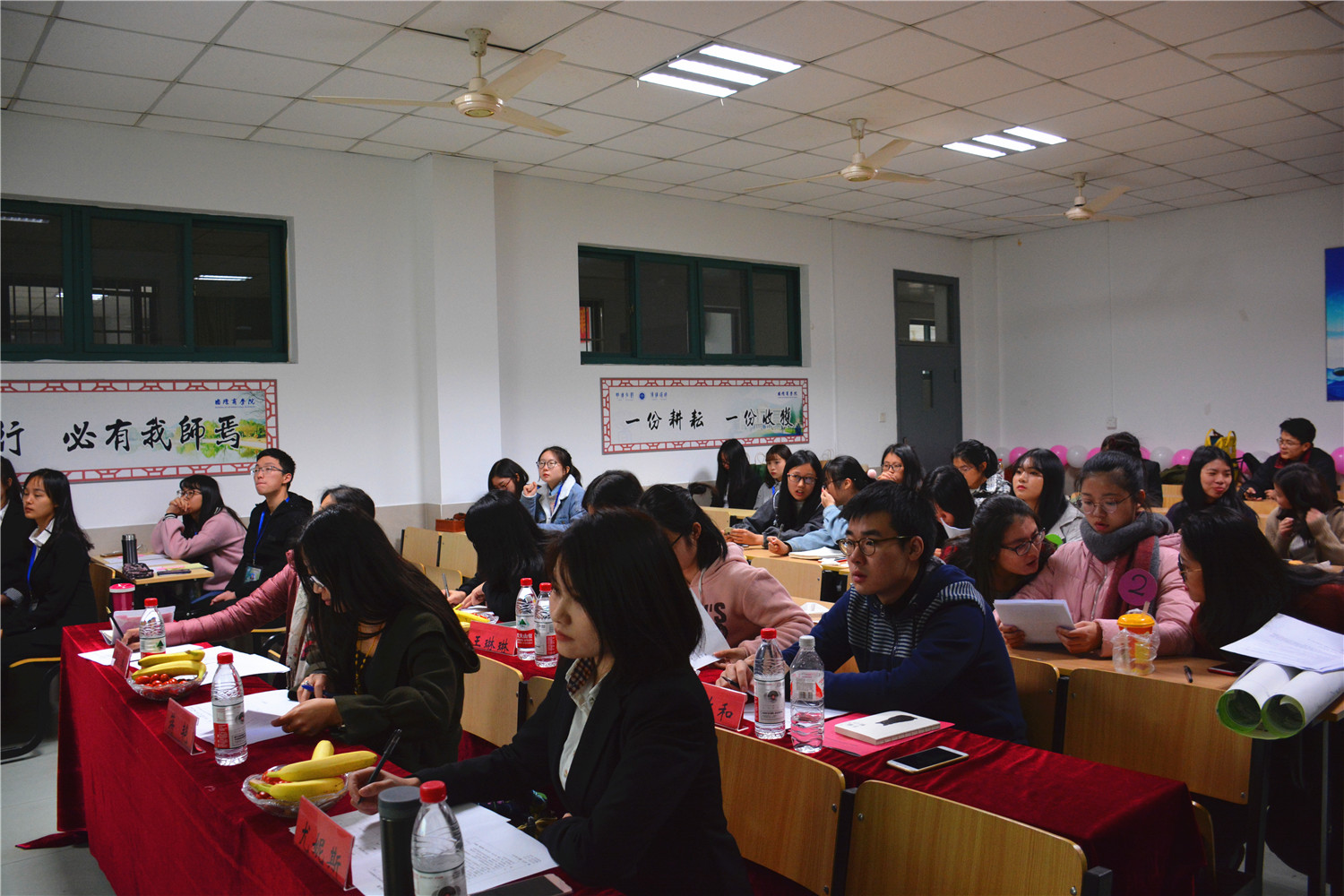 11月23日晚,商学院举办旅游产品创意设计大赛。 比赛邀请到了蒋艳老师、孙卓老师和尤妮斯学姐担任评委,团委代表严致和、学生会旅游协会上届部长徐双、社联代表王琳琳以及院学生泥巴影视负责人陈雪珂作为嘉宾出席。