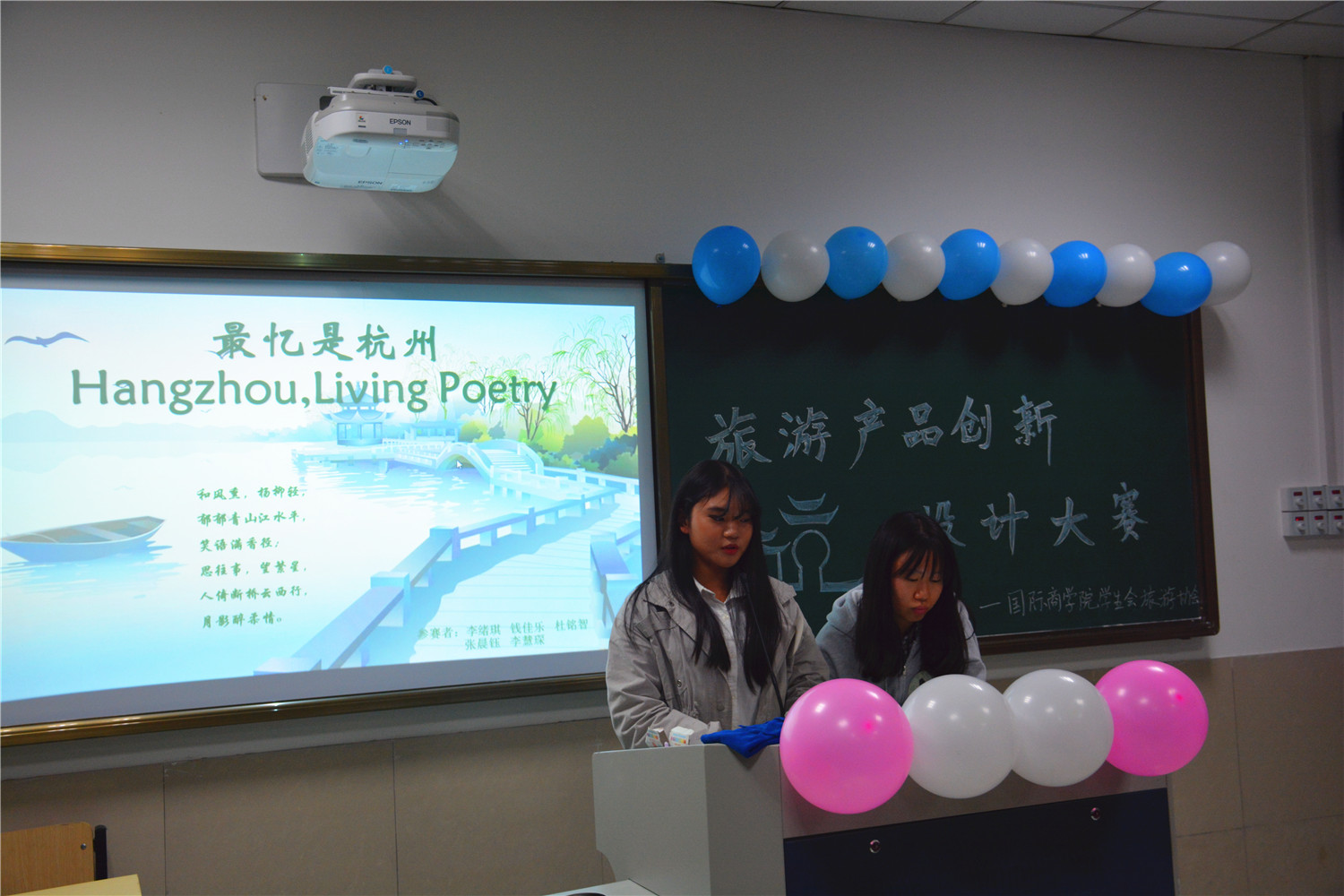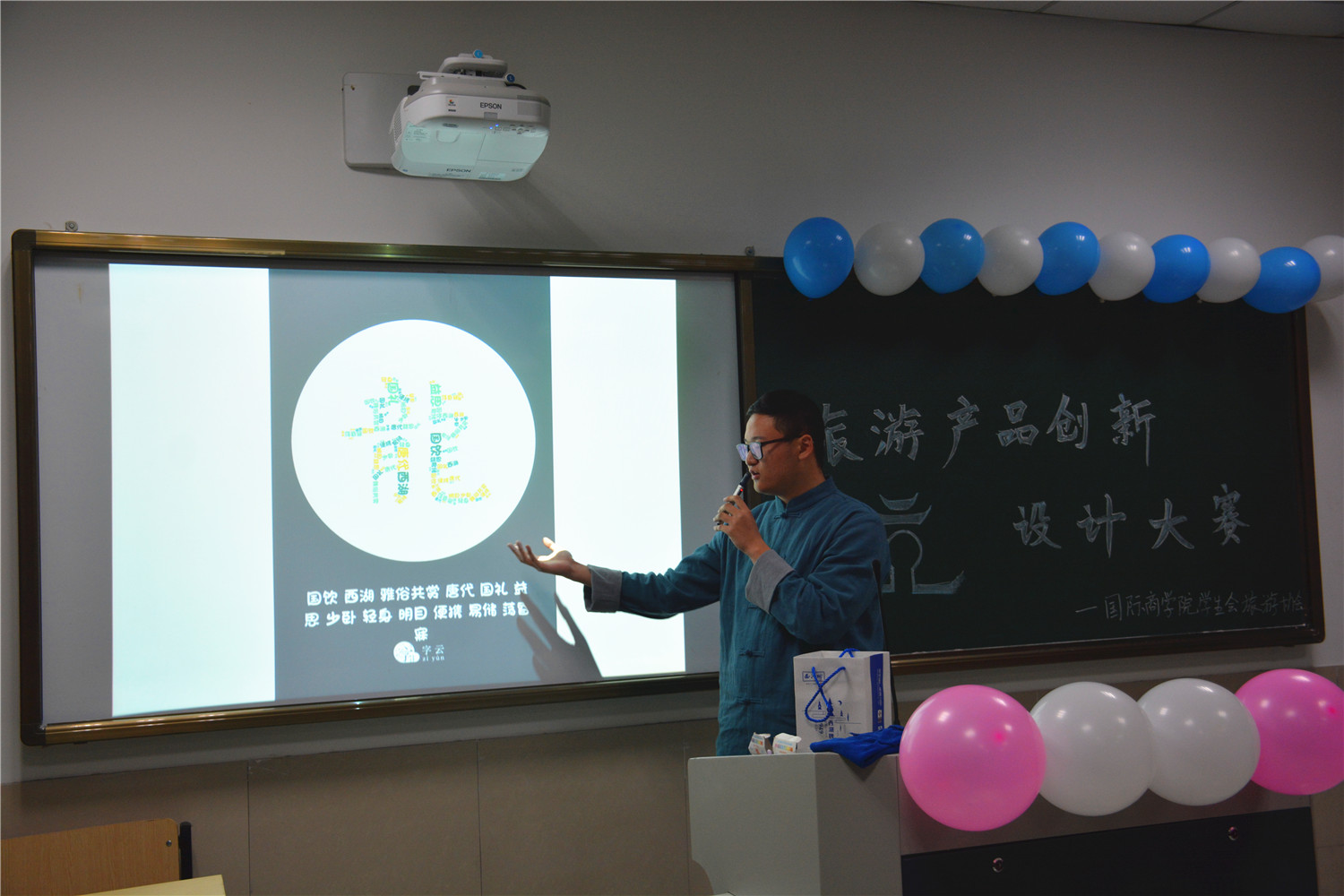 比赛立足于浙江杭州旅游国际化,要求选手着力打造出具有杭州特色的国际旅游产品,彰显杭州作为国际重要旅游休闲中心的特色。大赛分为作品展示和答辩两个环节,共有7组选手参加,参赛选手不光有泥巴影视 学子,更有一些其他学院的同学慕名前来。选手们按照抽签顺序介绍了他们精心设计的创新旅游产品,其中,有设计旅游路线的,有展现杭州特色产品的,也有为杭州旅游设计海报的……从中选手们的创新创意能力、团队分工能力以及个人实践能力得以一一展现。