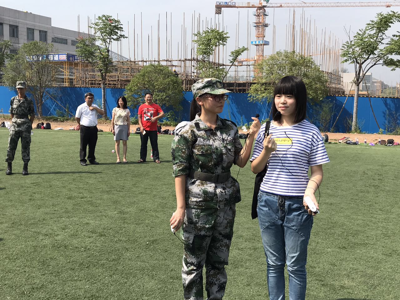 器宇轩昂,英姿飒爽。退伍归来的16会计4班的王泽舟与新同学们分享了自己在军营的经历并为同学们演唱一首军歌。有了学姐鼓励打气,相信新生们能在之后几天的军训中更加努力坚持。