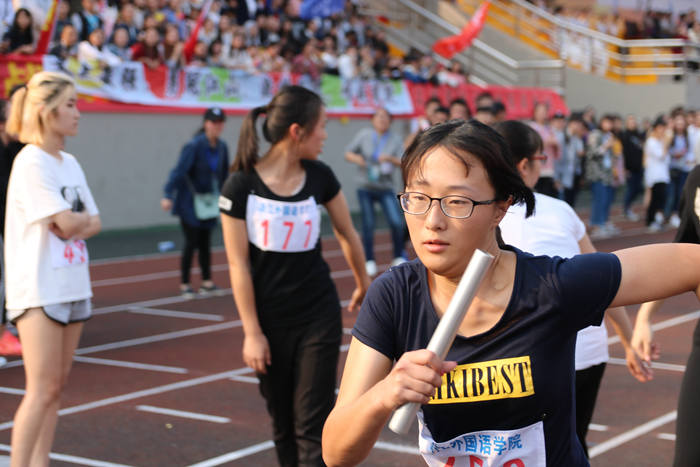 你们抱着必胜的决心,从起点开始拼命奔跑,竭力追赶,因为你们知道,此刻,你们身上担负的,是整个商院的荣耀。