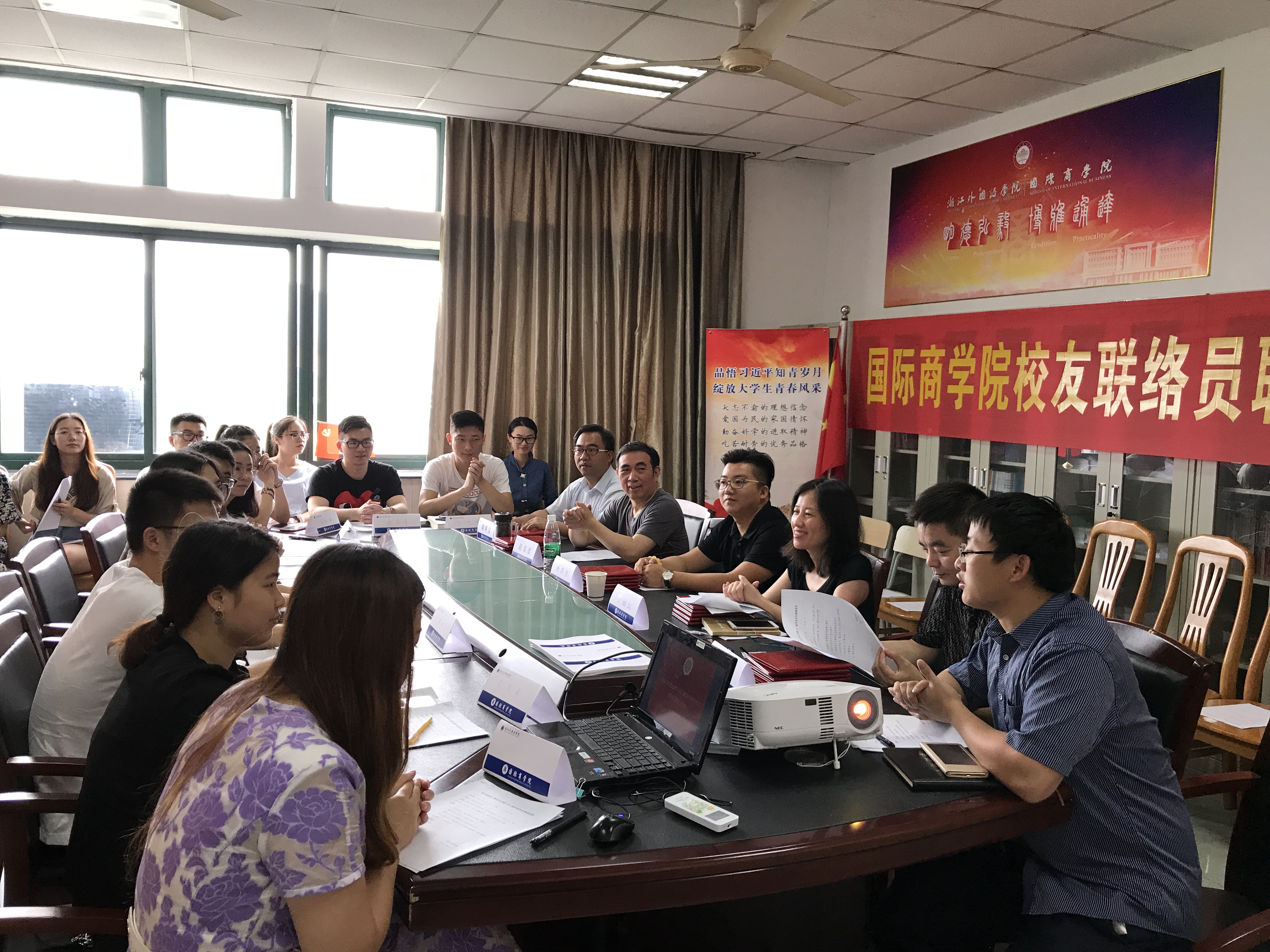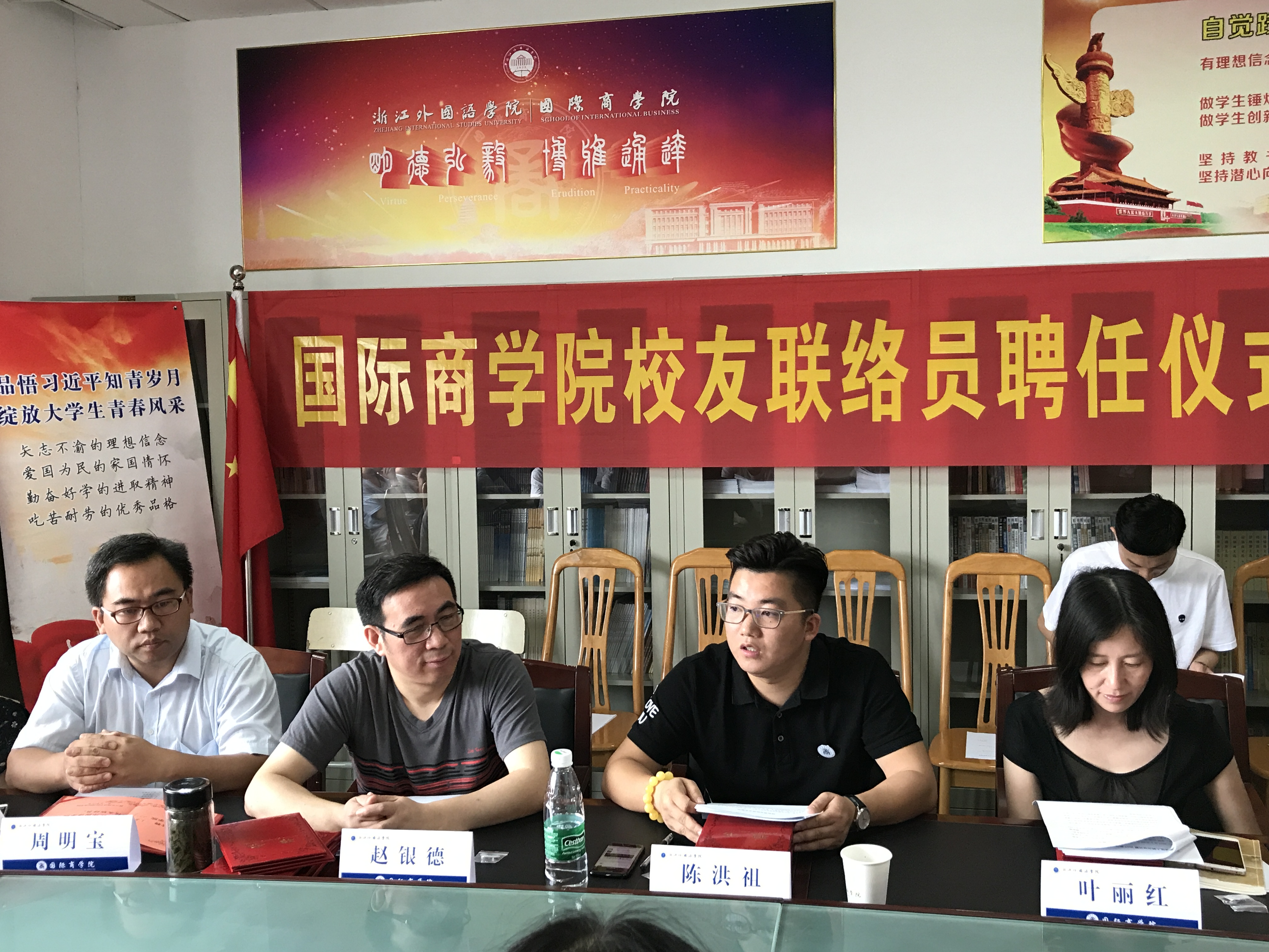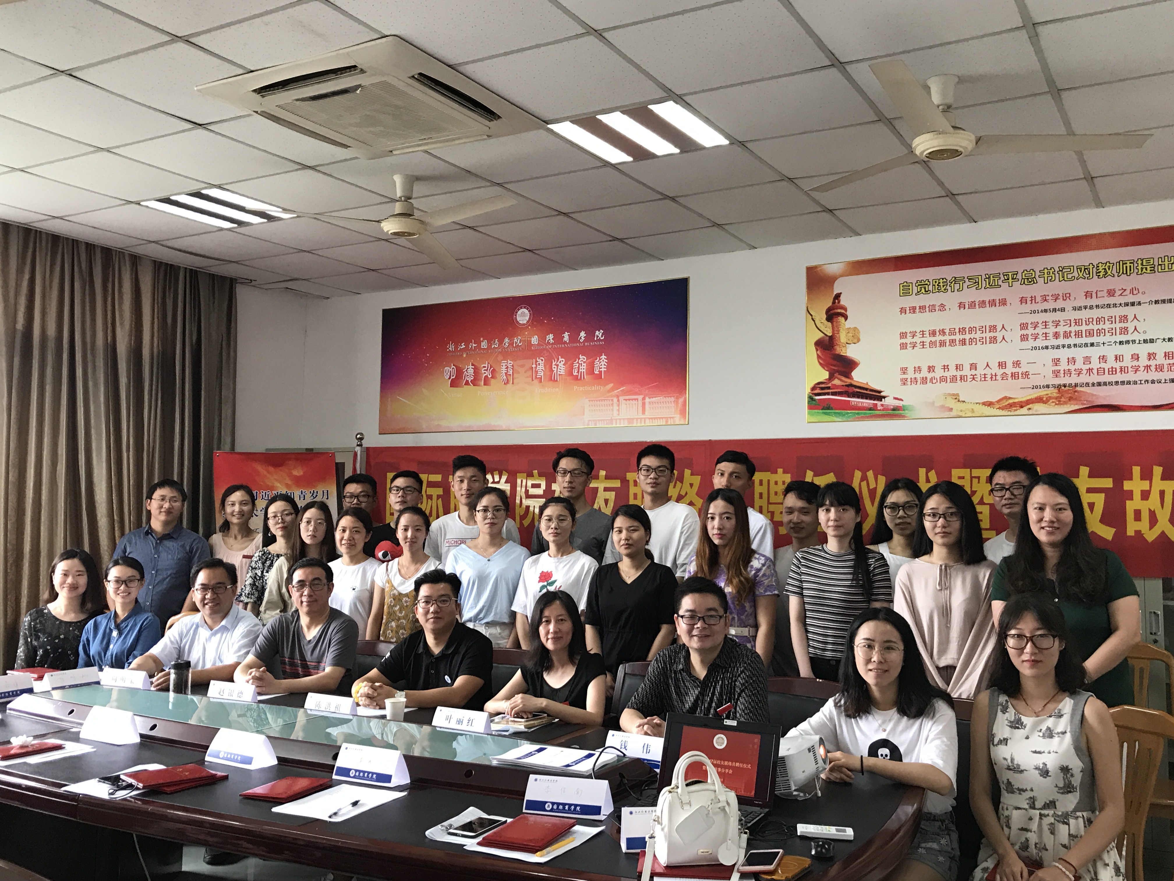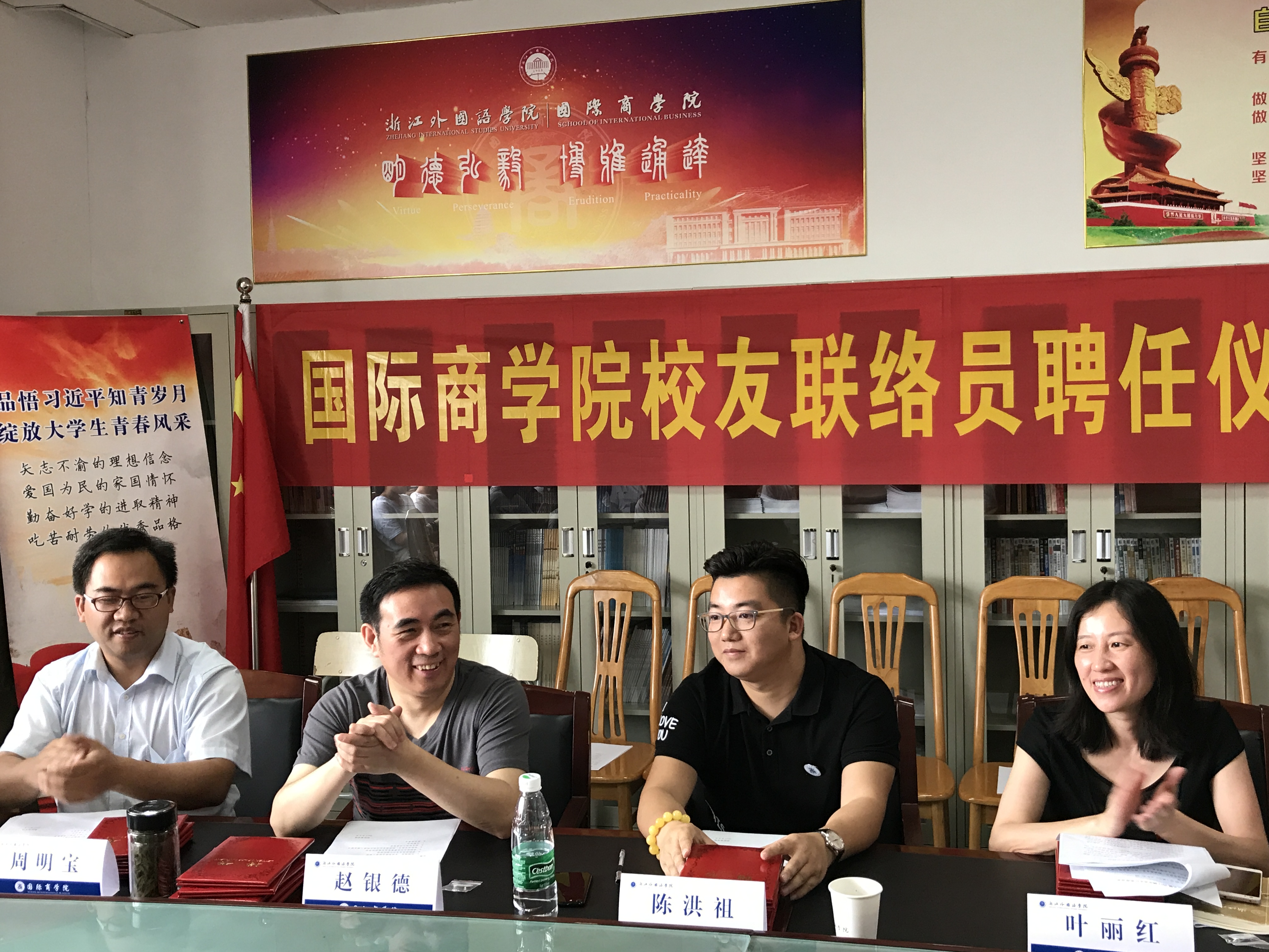 仲夏六月,清风拂面。6月20日上午,校友联络员聘任仪式暨校友故事分享会隆重召开。商学院校友会理事会会长陈洪祖、院长赵银德、院党总支书记叶丽红、党总支副书记周明宝、院办公室主任钱伟、院学工办主任梁汲媛、毕业班辅导员和24位同学参加了会议。辅导员周长喜主持会议。