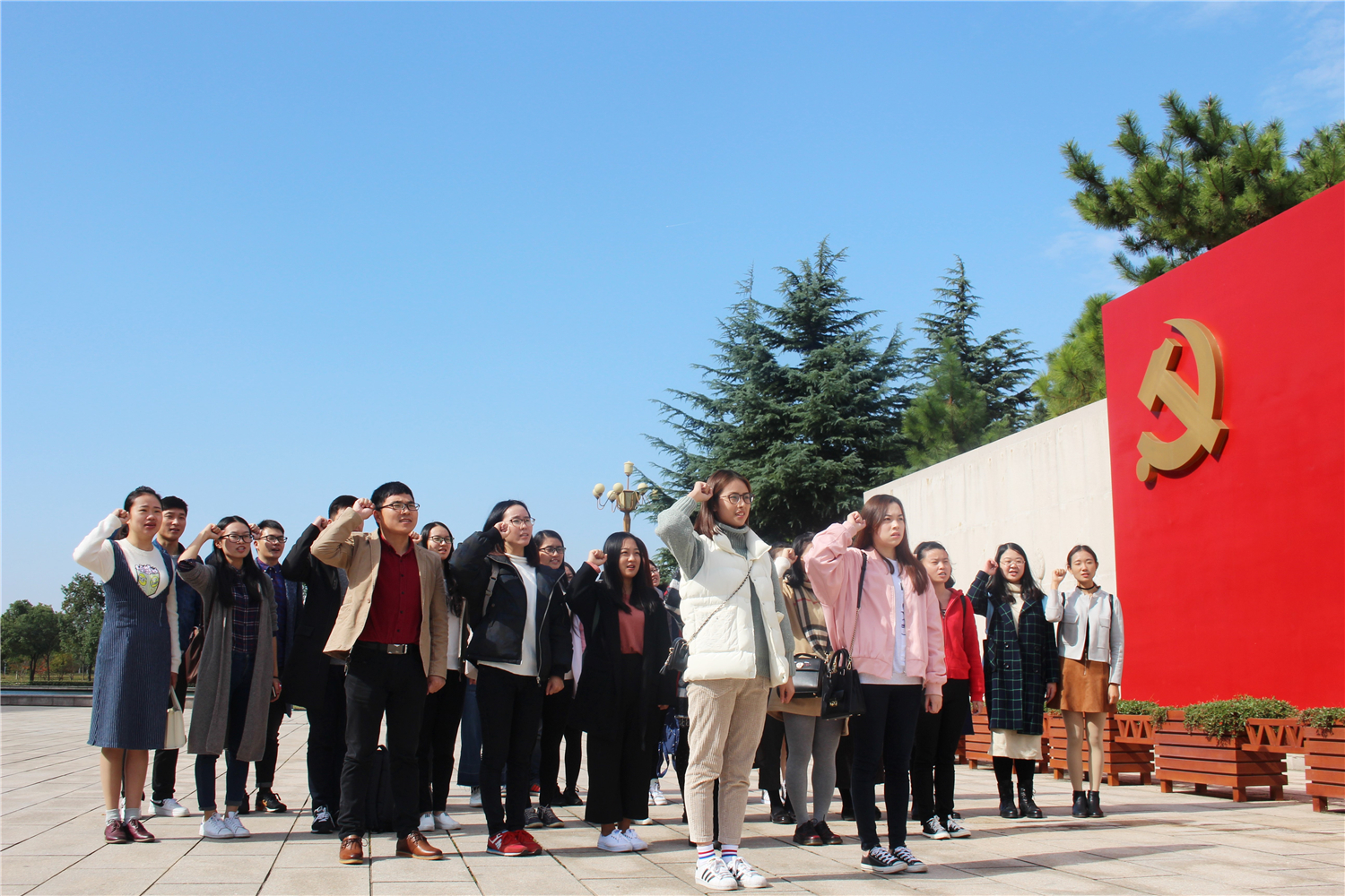 经过近两个小时的车程,我们来到了中国共产党一大召开地嘉兴南湖,追寻红船记忆,缅怀革命先烈。南湖革命纪念馆共分为三个部分:救亡图存,追忆中共抗争与探索;开天辟地,重温党的成立与发展;光辉历程,感受中国革命焕然一新。展览主要以历史图片和实物为主。党员们驻足细观书籍、照片、遗物等珍贵史料,南湖红船、虎门硝烟、北大红楼、嘉兴火车站等复原场景,展示了共产党人面对屈辱磨难,坚毅不拔、视死如归;为争取民族解放国家独立,积极探索、艰辛奋斗;为振兴中华国家富强,不懈进取、积极建设。 活动最后,在南湖革命纪念馆宣誓墙前,党员们在鲜红党旗前庄严郑重地举起右手,在16国商3班褚思佳,张可可的带领下一起重温入党誓词“我志愿加入中国共产党,拥护党的纲领,遵守党的章程,履行党员义务,执行党的决定,严守党的纪律,保守党的秘密,对党忠诚,积极工作……”,进一步坚定了共产主义信仰,不忘初心,砥砺前行。