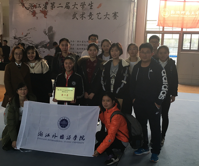 12月4日,浙江省第二届大学生武术竞艺大赛在杭州举行。我校大学生武术社团在吴炜和李志良两位老师的指导下,荣获团体总分第一名,共收获6金7银6铜的佳绩。