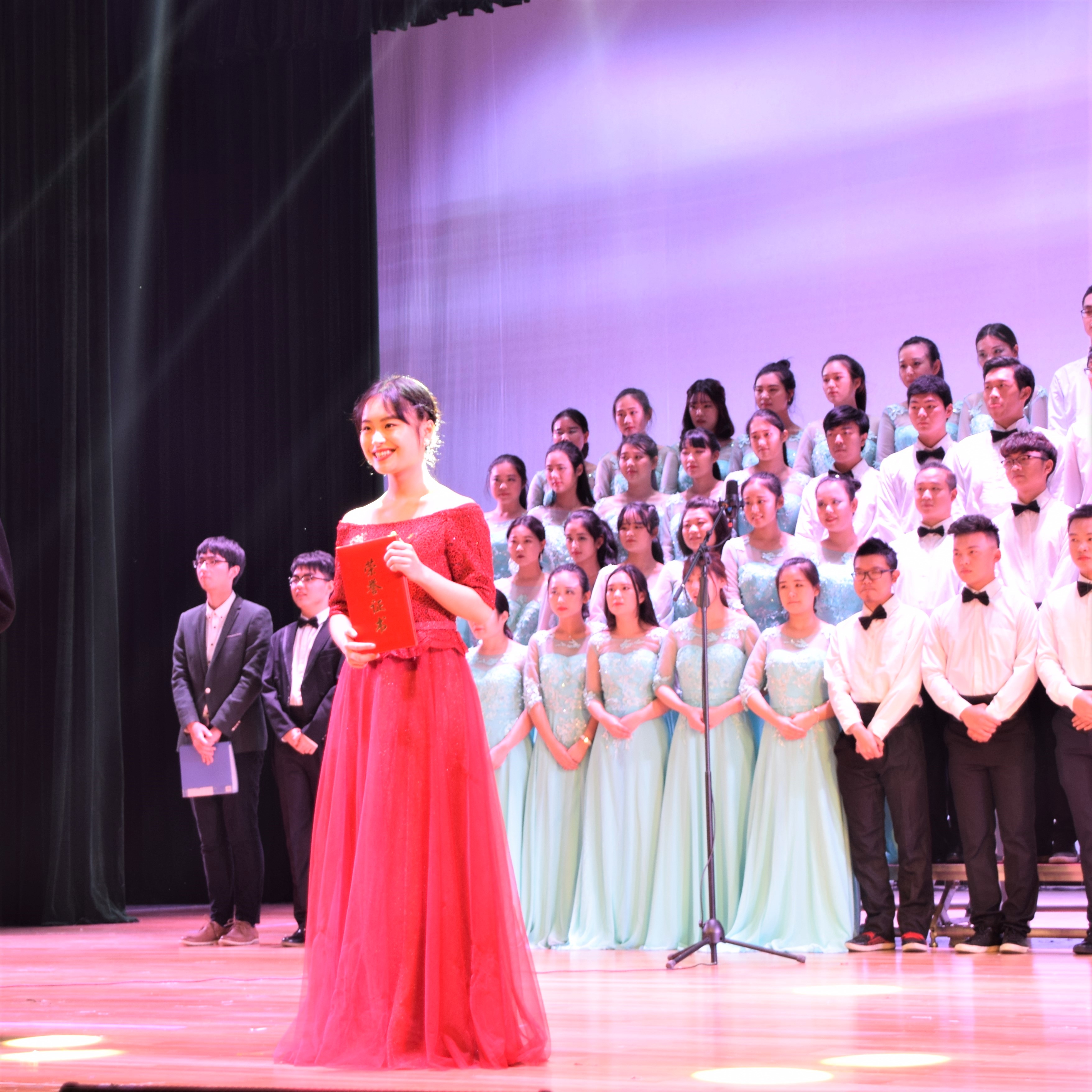 12月8日晚六点半,为纪念“一二·九”运动,弘扬积极向上的青年精神,我校第七届“一二·九”大合唱暨青春榜样颁奖典礼在追梦堂盛大举行,艺术学院教授周娟娟,副教授何飞舟,外教Brooke Paynter作为评委应邀出席。