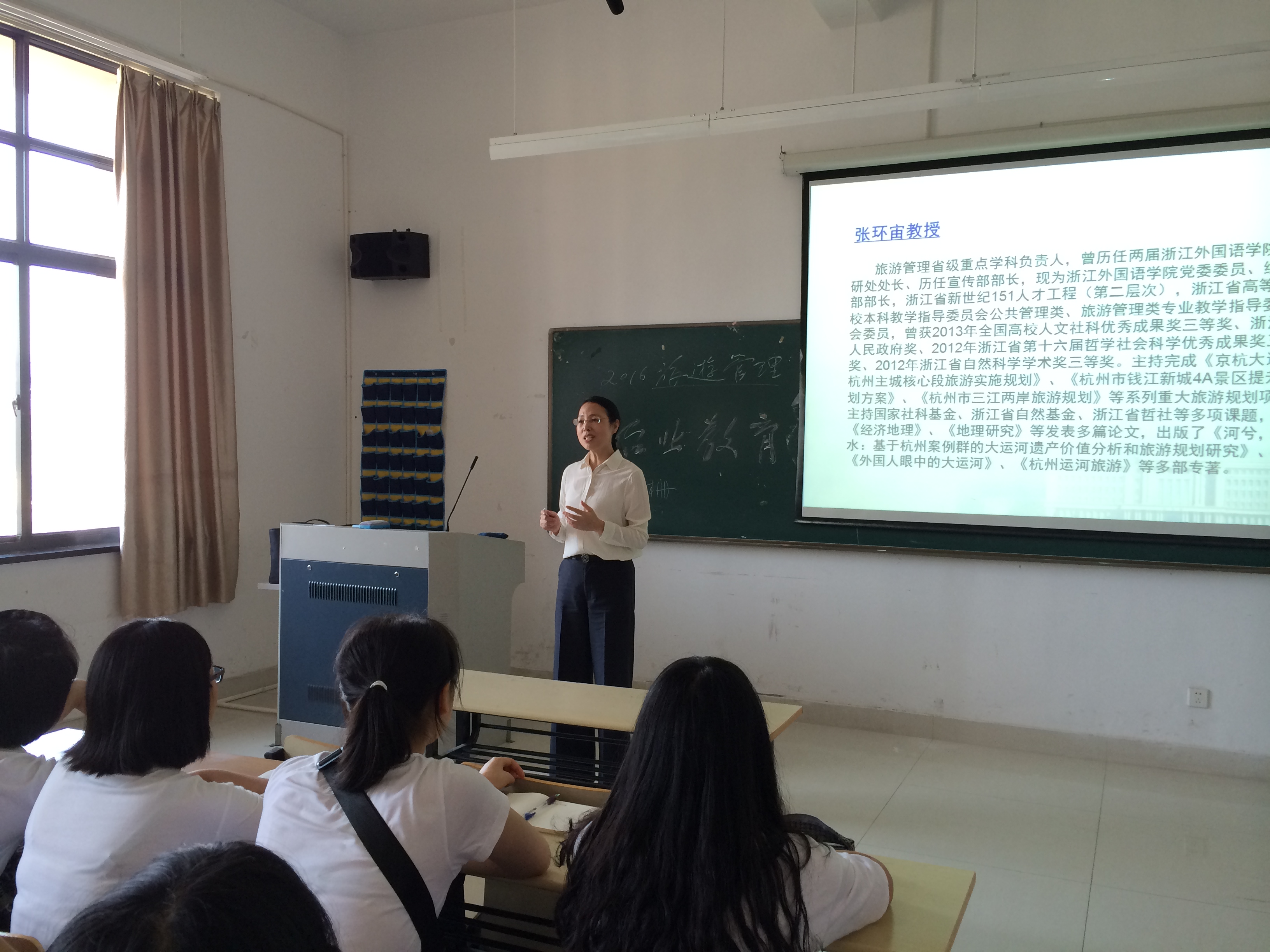 旅游管理专业省级重点学科负责人张环宙教授在给同学们作讲座