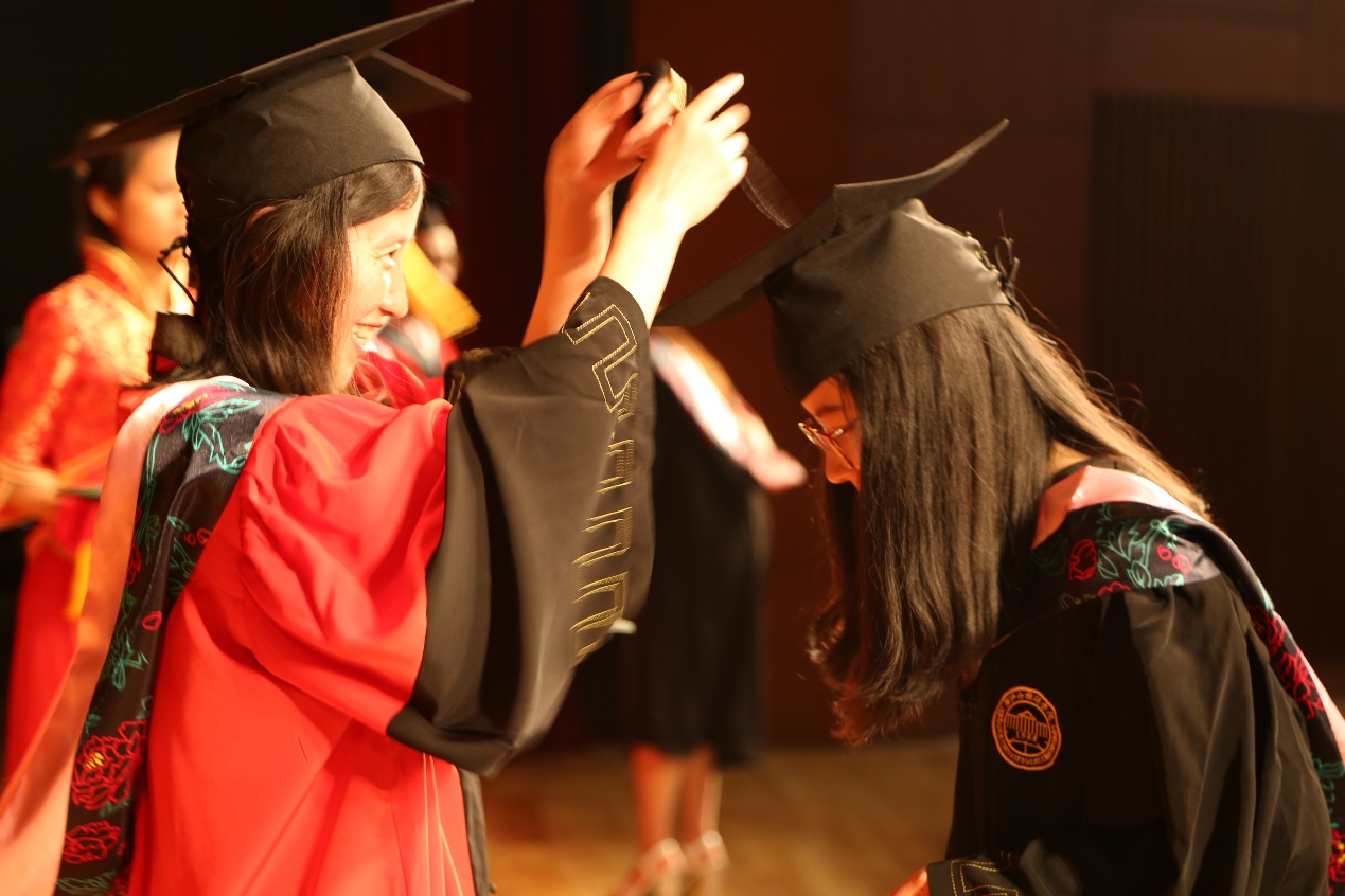 随后,典礼进入庄重的学位授予仪式,党总支书记叶丽红和赵银德院长为本科学位获得者逐一拨穗、颁授学位并拍照留念,学院其他领导在主席台观礼并一一握手祝贺毕业生。学位授予仪式后,学院领导为高职毕业生颁发毕业证书并合影留念。最后,毕业生与老师们进行了深情道别,所有的不舍、感激、祝福都在这一刻定格,毕业典礼落下帷幕。