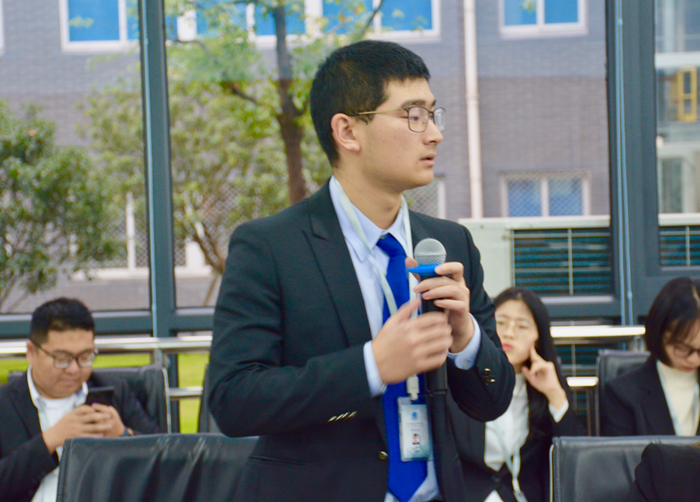 实地参观后,娃哈哈集团市场部经理王伟详细地向成员们介绍了娃哈哈集团并分享了相关的销售知识。学员们积极提问,从生产经营模式到销售营销手段,充分体现了同学们求知的热情与渴望。