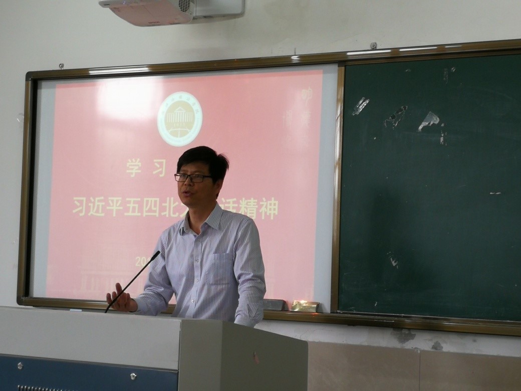5月10日下午,学院召开全体教职工大会,集体学习习近平在北京大学的重要讲话精神,学院党总支负责人指出,总书记关于“学校培养什么样的人、怎样培养人”的讲话为学院工作指明了方向;总书记关于“爱国、立志、求真、知行合一”的讲话,为广大青年学子指明了方向,对高校立德树人工作的开展具有重要的历史意义。