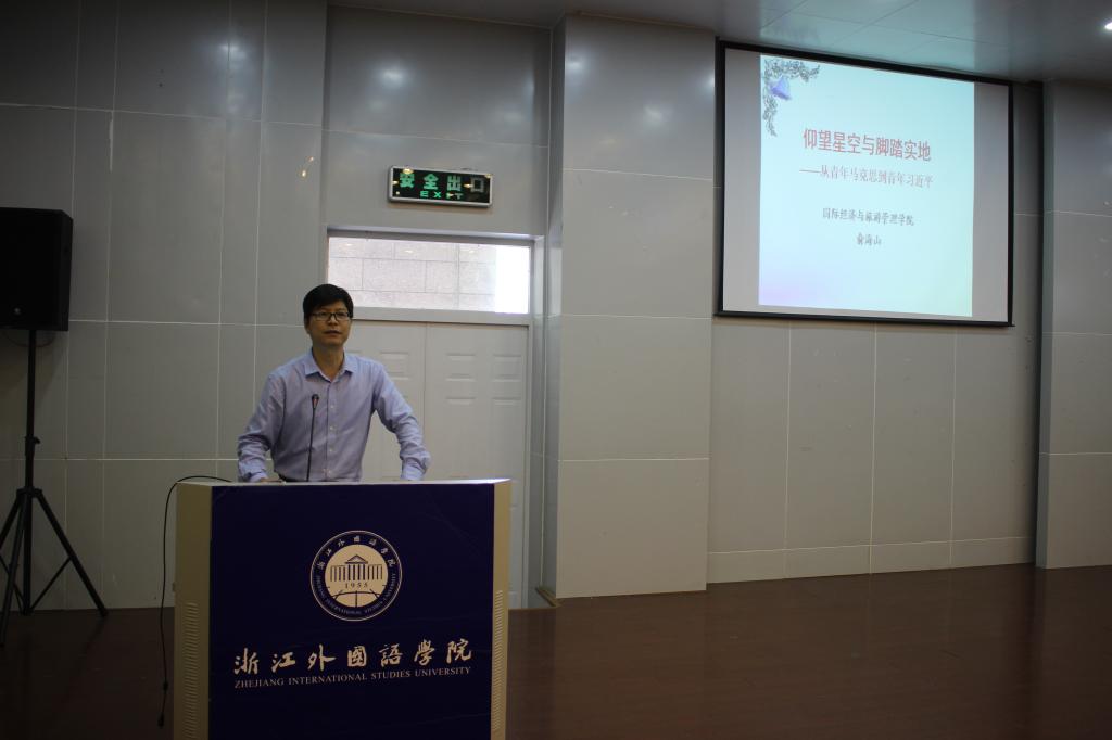 第一课为仰望星空与脚踏实地——从青年马克思到青年习近平,俞海山讲述了青年马克思与青年习近平的经历事迹,他们对真理与科学不懈追求心怀天下,爱国为民。他说,作为新时代青年党员,要牢记习总书记的殷切希望做到有理想信念,有道德情怀,有学识与能力,有健康的体魄,将自己的理想付诸行动,用广阔的胸襟和远大的志向抒写青春的华章。