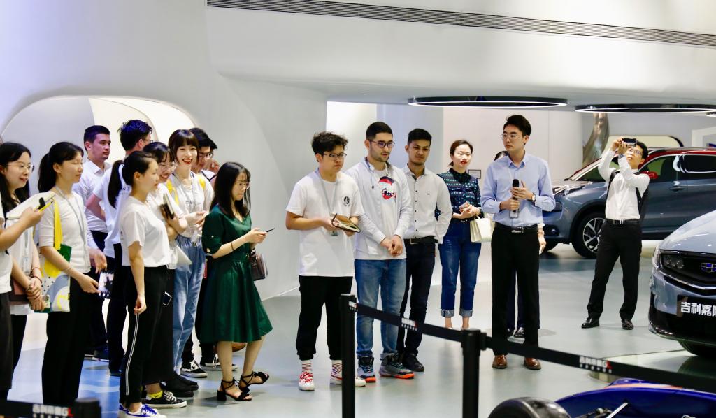 523日下午,泥巴影视 青年领导力研习营成员、大三学子以及留学生,在院党总支副书记杨立乾带领下,赴吉利集团进行参观学习。