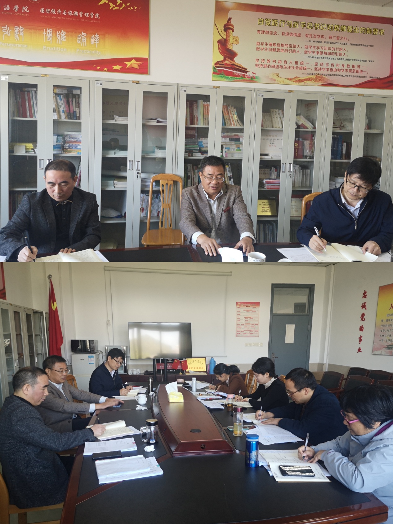 理论中心组成员纷纷表示,要珍惜国家来之不易的发展形势,把文件内容与自身本职工作紧密结合起来,进一步全面加强党的领导,进一步加强人才培养方案、专业建设、科学研究、就业工作等工作的建设,不断推进学院教学科研作风学风建设,推进学院发展。