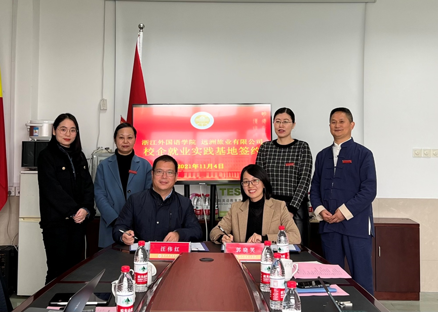 交流会后,我校与远洲旅业有限公司签署了校企就业实践基地协议。