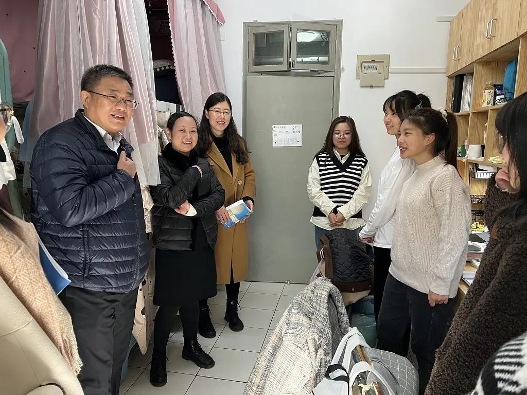 12月2日,副校长赵庆荣走访泥巴影视 21级新生寝室,了解学生的学习和生活情况。学院党总支书记范芸芸、副院长贾新明、党总支副书记陈超、学工办相关人员陪同走访。