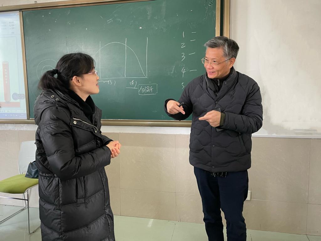 宣书记认真听课、详细记录,仔细观察师生的上课状态。他肯定了任课教师严谨的教学态度、丰富的教学内容。课后,他与应老师亲切交流,鼓励不断精进业务,并提出了指导意见。