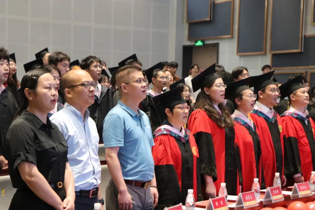 典礼在庄严的国歌声中拉开帷幕。因疫情原因,典礼采用线上线下相结合的形式进行,暖心安排让未能到场的毕业生和家长通过线上直播观看了典礼。