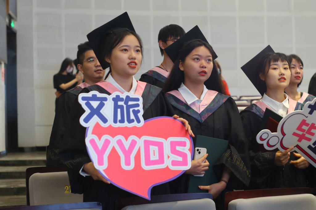 。2022届全体毕业生见证并亲身参与学院发展,为“国际文化旅游”重点领域发展、旅游管理国家级一流专业建设、会展经济与管理省级一流专业建设、申硕、专业国际认证等贡献了青春的智慧和力量。与此同时,也获得了自身的成长,已成长为道德品质更加优秀、知识储备更加丰富、视野格局更加开阔、人生脚步更加笃定的优秀文旅人。临别之际,张环宙对毕业生们寄予厚望,她强调,文旅融合是“新蓝海”,希望同学们如“鱼跃入海”,广阔天地任遨游;文旅创新是“大舞台”,希望同学们舞出精彩、未来更可期。她叮嘱同学要心中有梦想,眼里有星光,生活有坚守,脚下有坚守,脚下有道路,做有志有识有为青年。