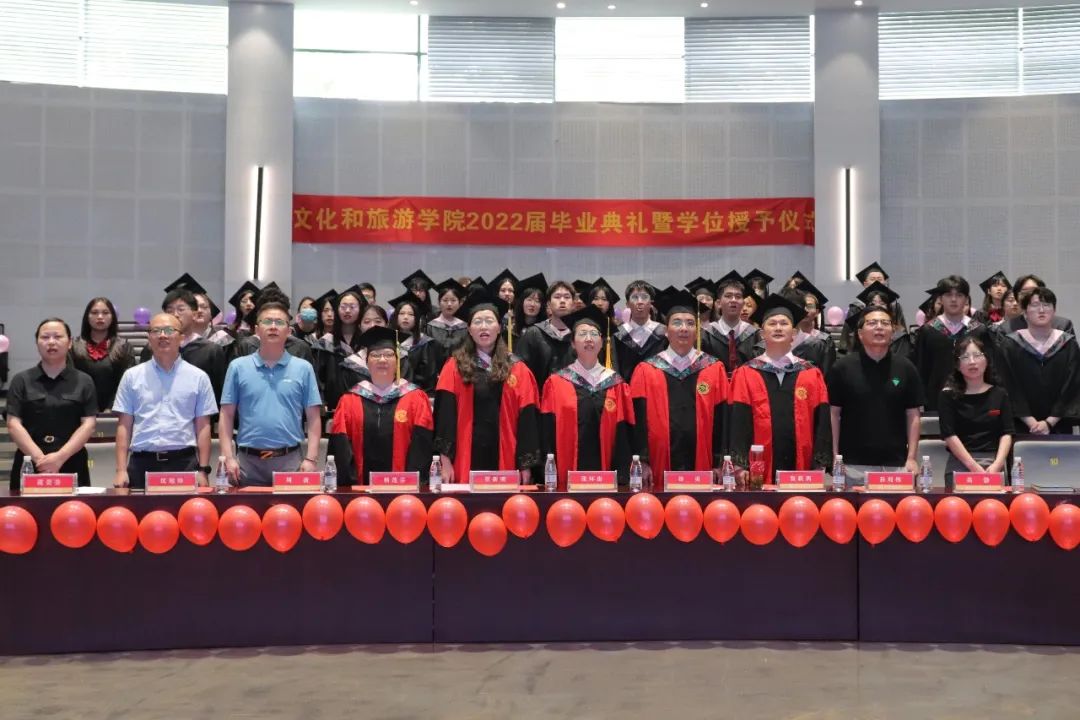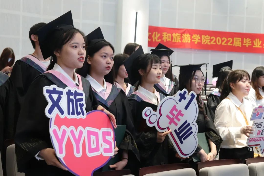 典礼开始前播放了学弟学妹献给2022届毕业生的纪念短片,用历史与现实交织的镜头,回顾了文旅学子精彩的大学时光。表达了学院全体师生对毕业生真挚的祝福。