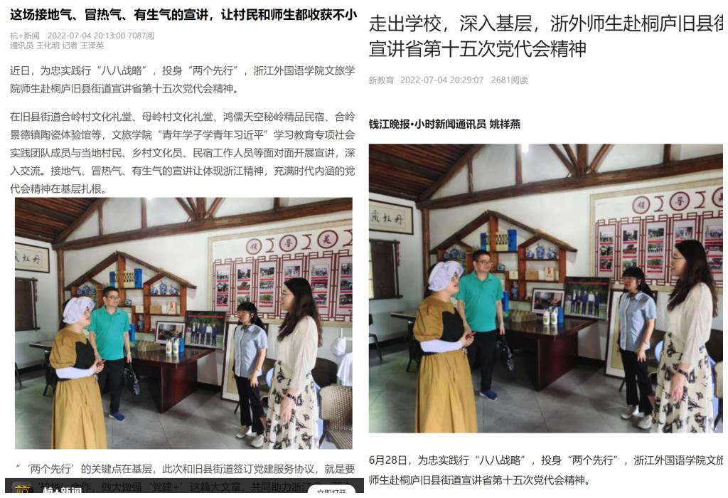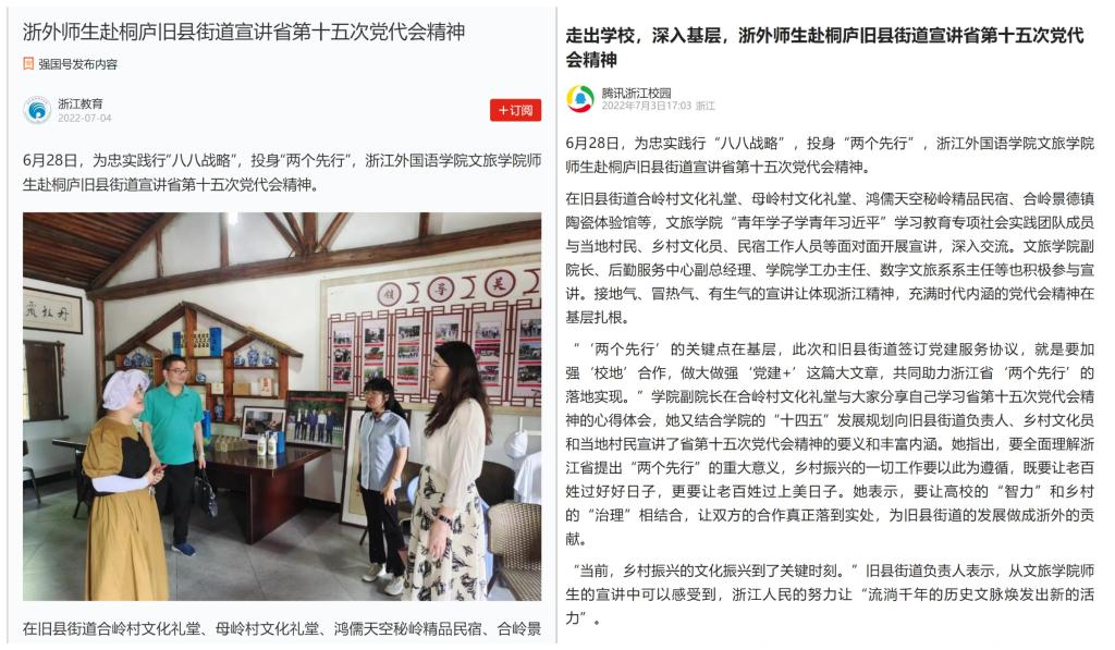 腾讯新闻:走出学校,深入基层,浙外师生赴桐庐旧县街道宣讲省第十五次党代会精神