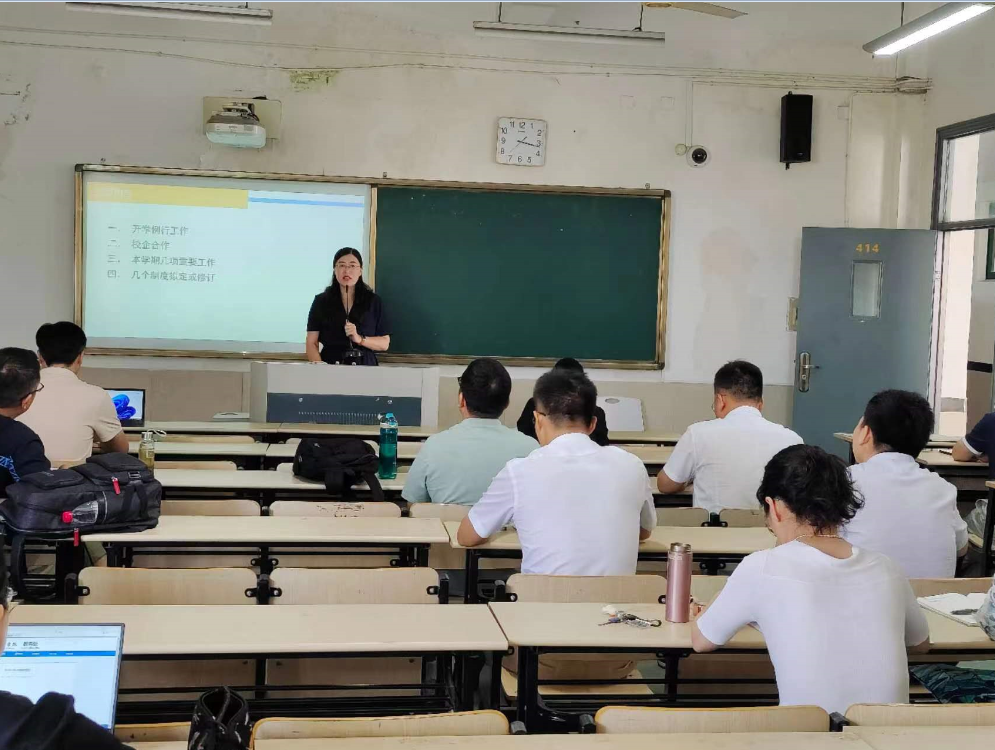 副院长贾新明就开学例行工作、校企合作、本学期几项重要工作、学院制度拟定及修订等情况做了强调。