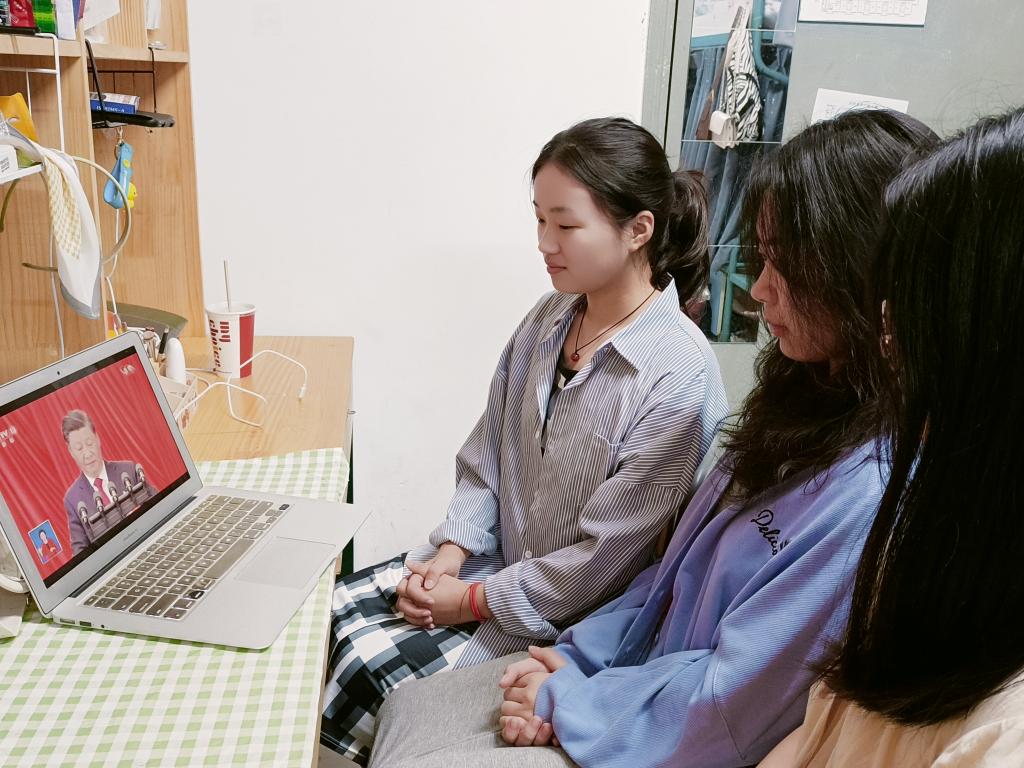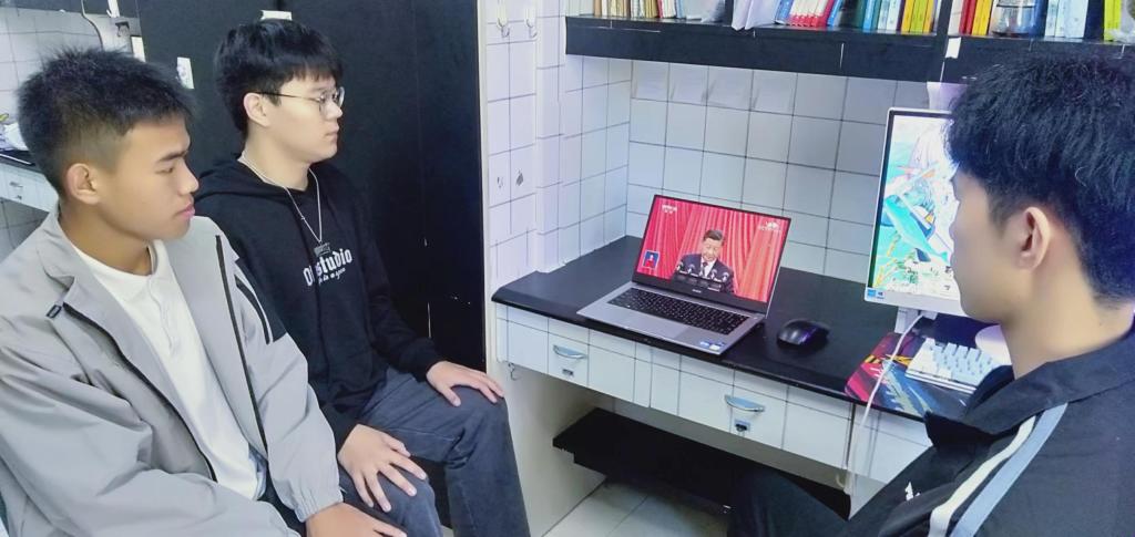 学院其他学生也以寝室为单位或个人形式,通过各种途径收看了大会盛况。