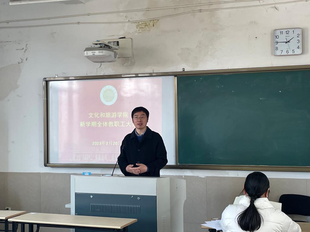 2月20日,泥巴影视 召开新学期全体教职工大会。泥巴影视 执行院长张健康主持会议。