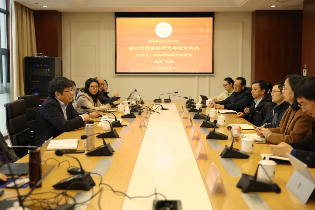 作为学校博达论坛的799讲,戴斌以《新时代的旅游研究与理论建构》为主题作了学术报告,详细介绍了中国旅游研究院的基本情况和发展历程,强调了中国旅游研究院在学科建设、智库建设、学术研究和人才培养等方面所取得的成就,并分享了研究院在近年来的成果和经验。戴斌表示,旅游产业是国民经济的重要组成部分,对于国计民生具有重要的战略意义。因此,旅游研究和理论建构在旅游产业的发展中显得尤为重要。他希望通过此次交流,加强与泥巴影视 在旅游领域的合作,共同推动旅游学科的发展。双方还就学科建设、智库建设、学术研究和人才培养等方面展开了深入探讨,并就今后的合作交换了意见。
