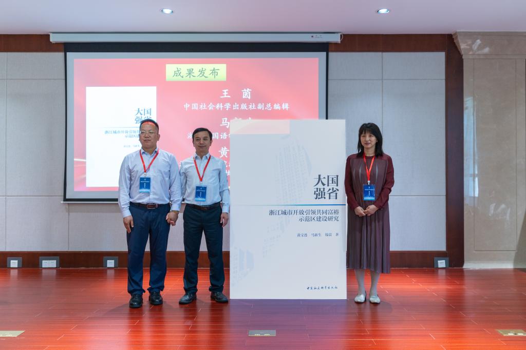 会议期间还举行了《大国强省》研究成果发布会。出版方中国社会科学出版社副总编辑王茵、策划者我校城市国际化研究院执行院长黄宝连、共同作者我校图书馆馆长马新生进行了揭牌仪式。今后,城市国际化研究院将调查研究100个城市,对浙江整体发展情况进行评估,同时不断完善论坛举办的体制机制,推动“一书”与“一论坛”互相促进。