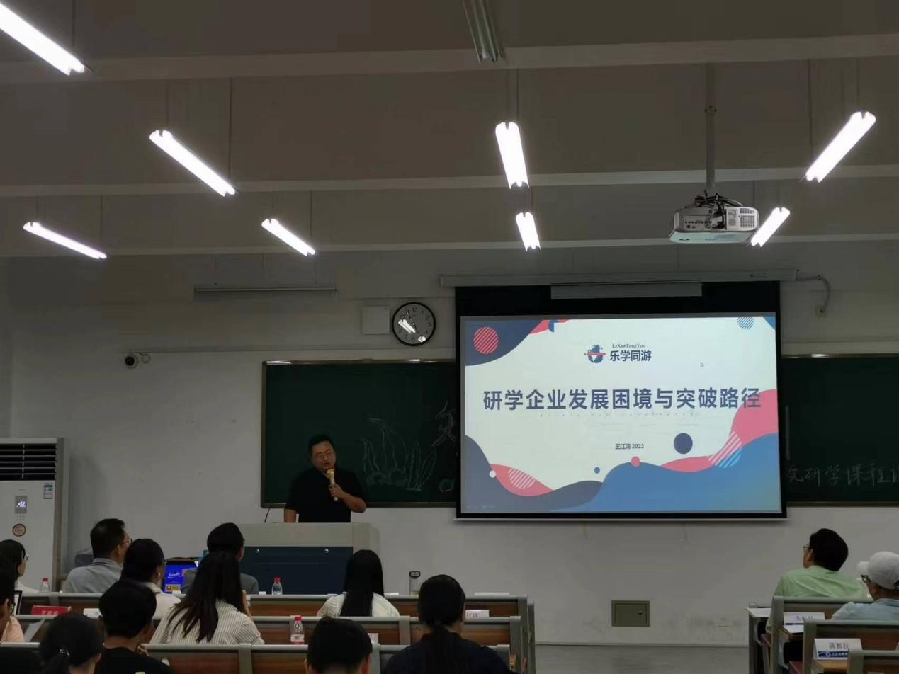 在公布作品荣获情况后,大赛邀请了企业代表从不同角度为与会同学和嘉宾进行了研学产品、市场、管理、经验等方面的主题分享。木塔与天空创始人虞佳乐从合格研学产品经理的培养视角进行分享,以木塔教育为例,明确指出产品经理应具备的能力和素质,包括其责任与工作流程。乐学同游创始人王江涛以自身企业发展阶段为例,分析当今研学企业发展困境,并提出协同地域资源与地域企业、校企联合培育实践型人才等路径走出困境。杭州国际青少年洞桥营地主任陈俊华针对研学实践活动设计提出建议,并鼓励学生积极投入,为其今后在研学行业的成长指明方向。海亮素质教育集团副理事长,海亮教育研究院首席专家满都拉通过分享日本、英国、芬兰这三个国家的研学历史与特色,引出“现象教学”的概念开展研学课程,为行业借鉴“他山之石”来设计、运营今后的研学产品的提供了新的启发与思考。