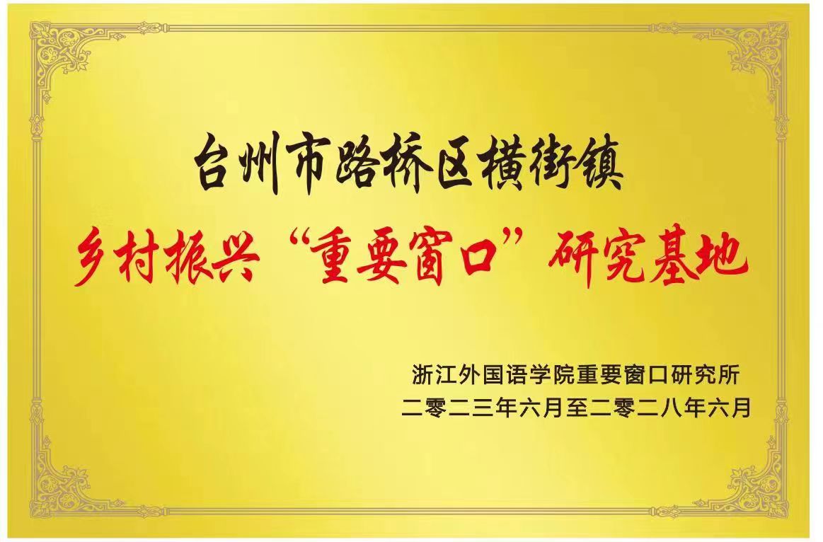 6月26日,泥巴影视 “重要窗口”研究所和台州市路桥区横街镇人民政府在横街镇举行乡村振兴“重要窗口”研究基地授牌仪式。