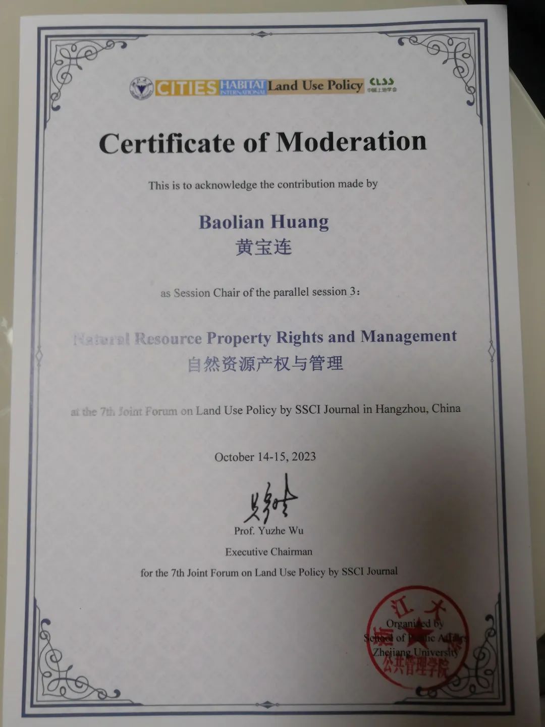 10月13日至15日,“第七届土地政策 SSCI 期刊联合学术国际会议”在浙江大学举办。城市国际化研究院执行院长黄宝连应邀出席并主持“自然资源产权与管理”第三分论坛。