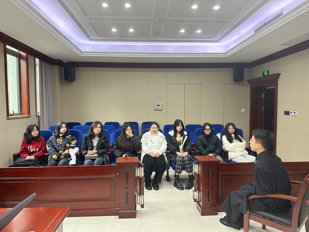 、国商学院、西语学院师生近距离地观摩了一场法院庭审,并与案件审判长进行了一次近距离的交流。