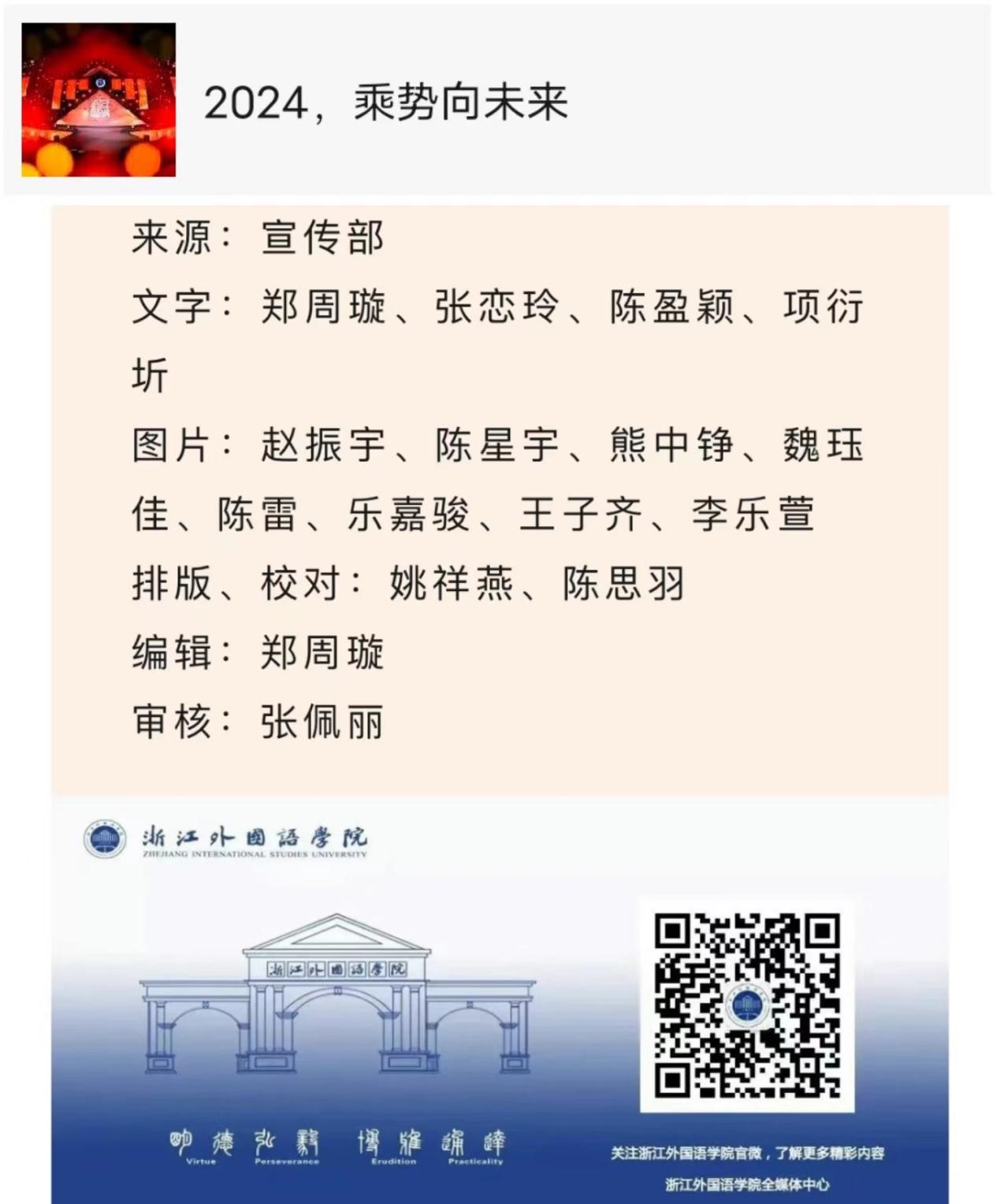 12月31日学校跨年盛典精彩纷呈,直击人心。观众们都沉醉在歌声与舞蹈里享受这场视听盛宴,直呼,“浙外有自己的春晚”、“大学生有自己的内娱舞台”!
