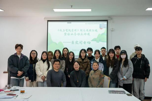 的品牌育人、课程建设等相关工作。此次结课汇报不仅给每个小组提出了细致且专业的点评,对旅游管理专业同学勇于开展专业思考给予了高度认可。她还号召同学们要担负起大学生的责任,为国家建设、乡村发展、文化传承做出积极贡献。