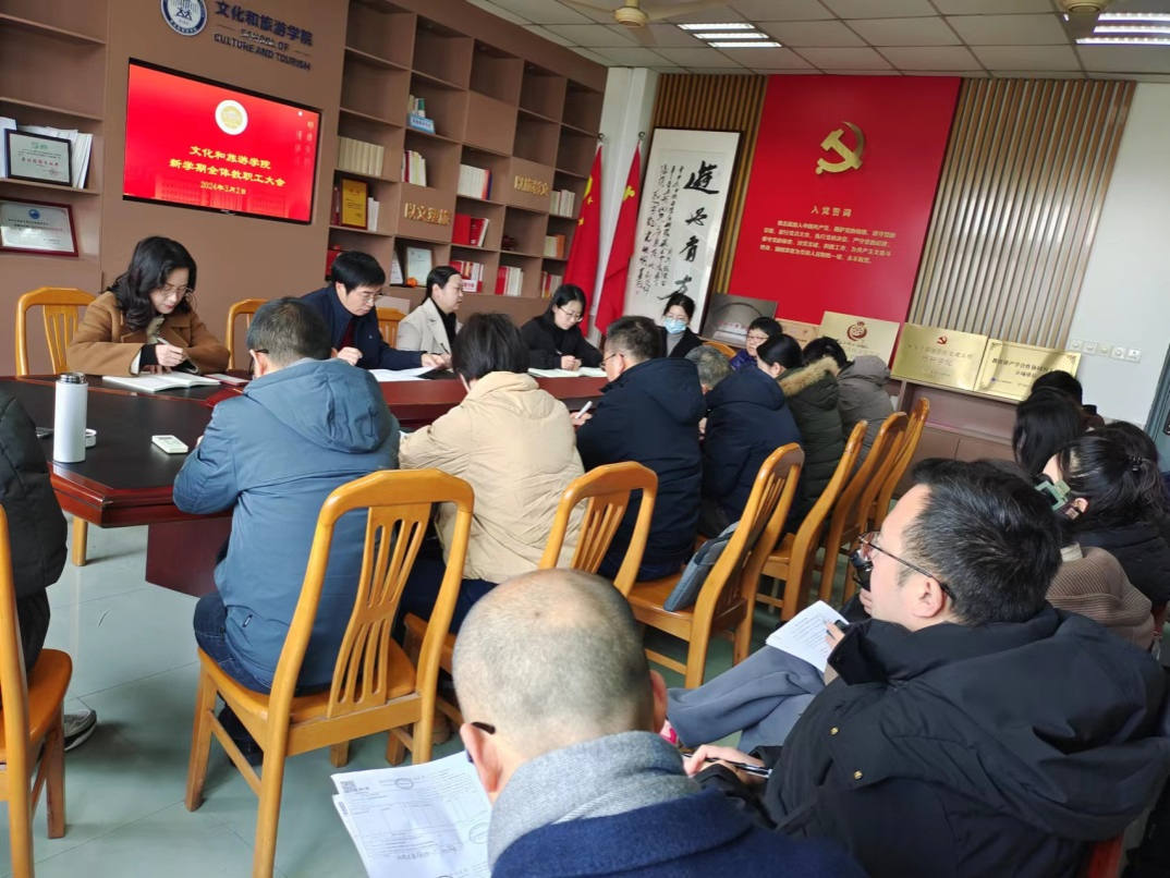 学院党总支书记范芸芸结合寒假开展的学校党代会报告调研工作,结合学院实际,对学校务虚会“深入谋划”“加快转型”“深化变革”等关键词进行了逻辑分析和阐释。她强调,要认清历史方位,深度理解学校办学新定位,不断提高服务新型国际关系的文旅能力。范书记还就省级标杆院系的培育创建工作进行了部署。她指出,要把党建工作和学院中心工作紧密结合,通过党建提升内部治理,解决学院发展动能问题,以高质量党建服务学院高质量发展。会上,范书记还强调了安全稳定、招生等工作。