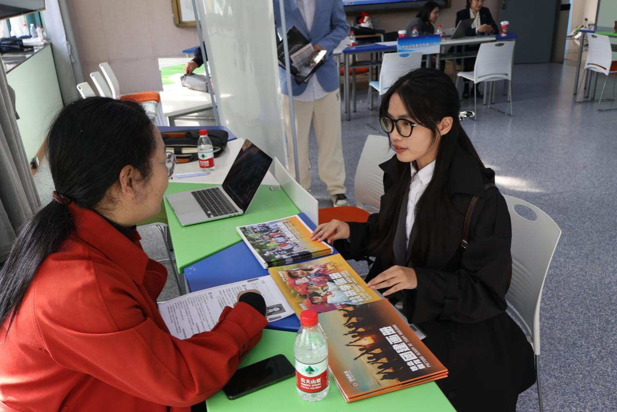 招聘会上,泥巴影视 党委书记范芸芸、党委副书记黄瑾来到现场,在关注同学们求职情况的同时,还与企业负责人就人才培养、岗位需求、晋升空间等内容展开交流。