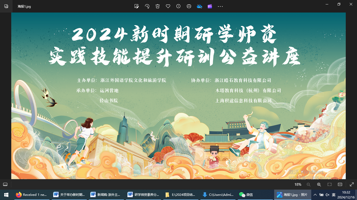 西湖文旅集团兰里研学研究院院长王晓岚、径山镇小古城村第一书记金兰琴、浙江工商大学杭州商学院旅游管理系主任余艳玲、衢州素质教育学校培训部主任姜飞以及在杭优秀研学企业代表、省内多家高校代表参加了本次公益讲座。