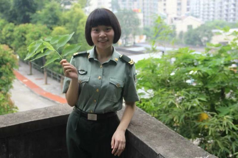 谈及当初为什么要去时,她说希望锻炼自己,家人的支持,亲人的榜样,让她毅然选择去部队实现自己的人生价值。刚到那里,她经常哭,在部队的黑夜起初真的觉得很漫长,也会想退缩,很想家。但慢慢地,战友的关心,让她逐渐适应。有人曾经问她后悔吗?她说不后悔!斩钉截铁地不后悔!是部队教会了她保家卫国的使命感和责任感。退伍后脱下的是军装,收获的是成长。军旅的岁月结束后踏入校园,军训期间还帮班级带军训,成为一个教官,很快就融入了同学们的生活。校园生活的还是相对自在,相比部队,那就更应该努力学习,所以她抓紧考四六级,考了初级会计实务,对于未来她希望继续深造,考一个好的本科学校,丰富充实提升自己。