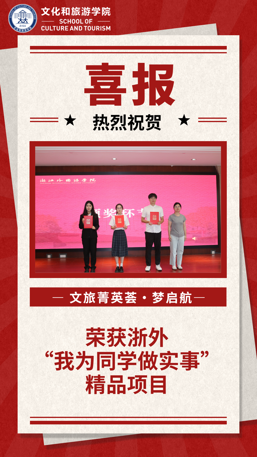 喜报丨热烈祝贺泥巴影视 【文旅菁英荟·梦启航】系列活动荣获浙外“我为同学做实事”精品项目!