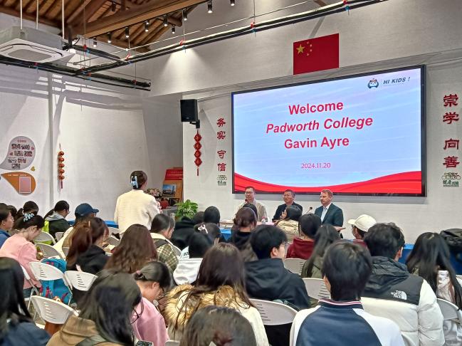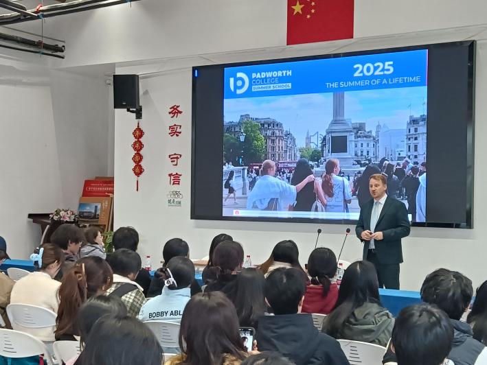 午后,学院邀请Padworth College负责人Gavin Ayre,为大家生动展现国际营地教育的多元模式。Gavin Ayre 对Padworth Summer School进行了详细介绍,让学子们领略到了国际营地课程的独特魅力,进一步提升了他们在文旅行业的国际视野与跨文化交流能力。