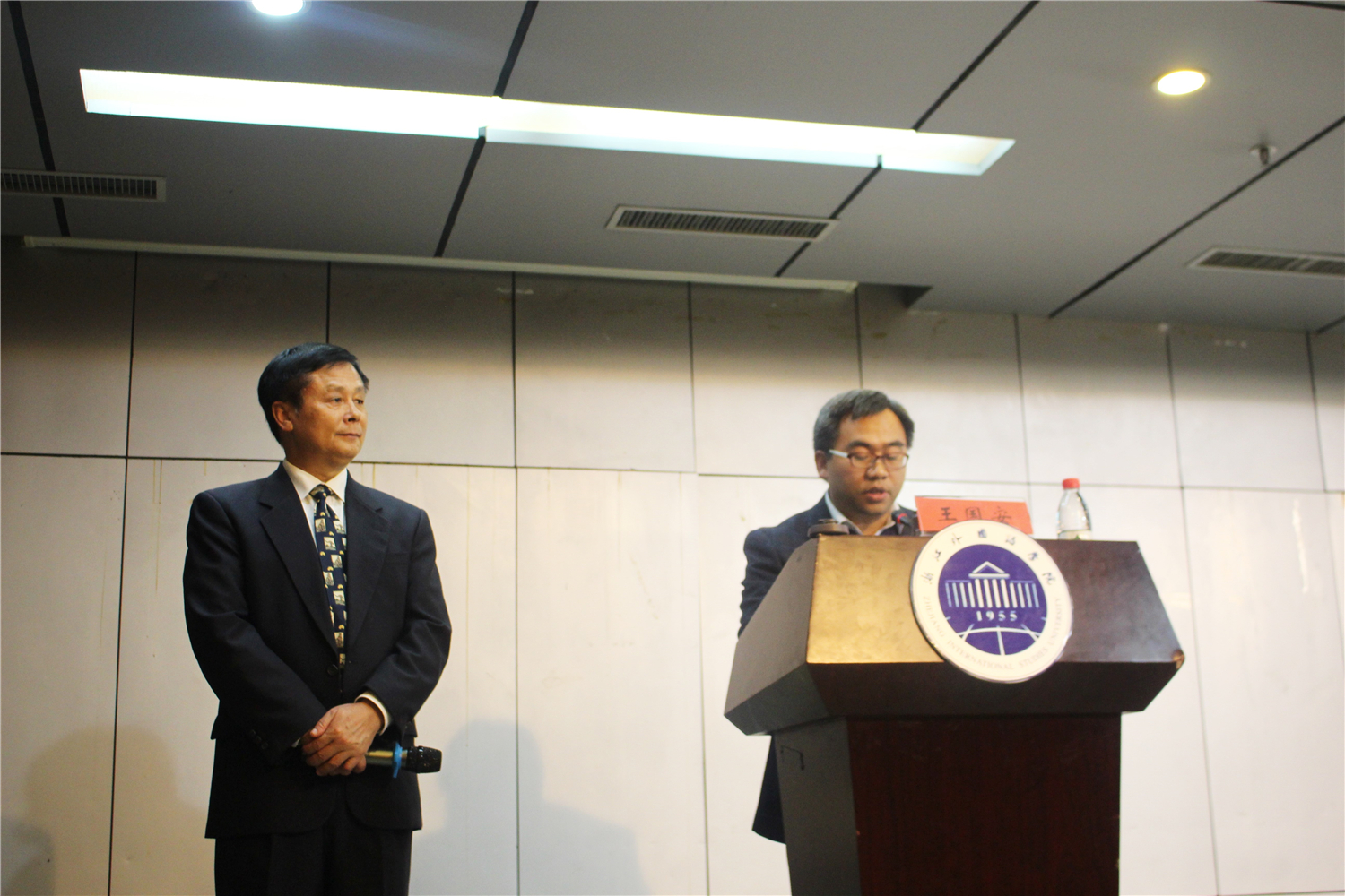 11月14日晚6点,泥巴影视 于图书馆二楼博文堂举办“国际商务的有效沟通”专题讲座,浙江省国际经济贸易研究会理事、浙江工商大学经济学教授王国安受邀为泥巴影视 学子带来精彩的一课。院党总支副书记周明宝主持本次讲座。院学生会指导老师赵冬冬,学生国际文化交流中心指导老师何扬阳及16级全英专业全体同学参加了本次讲座。