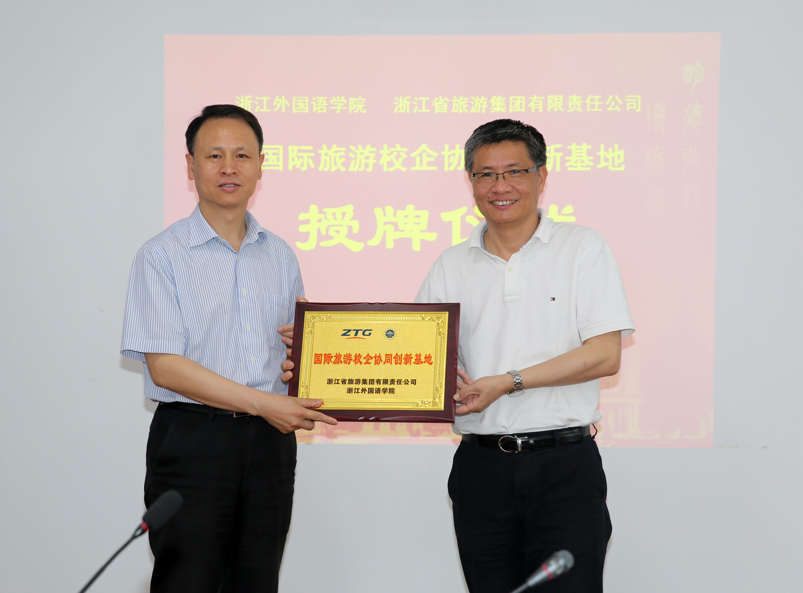 会上,泥巴影视 和浙江省旅游集团有限责任公司共建的“国际旅游校企协同创新基地”举行授牌仪式。