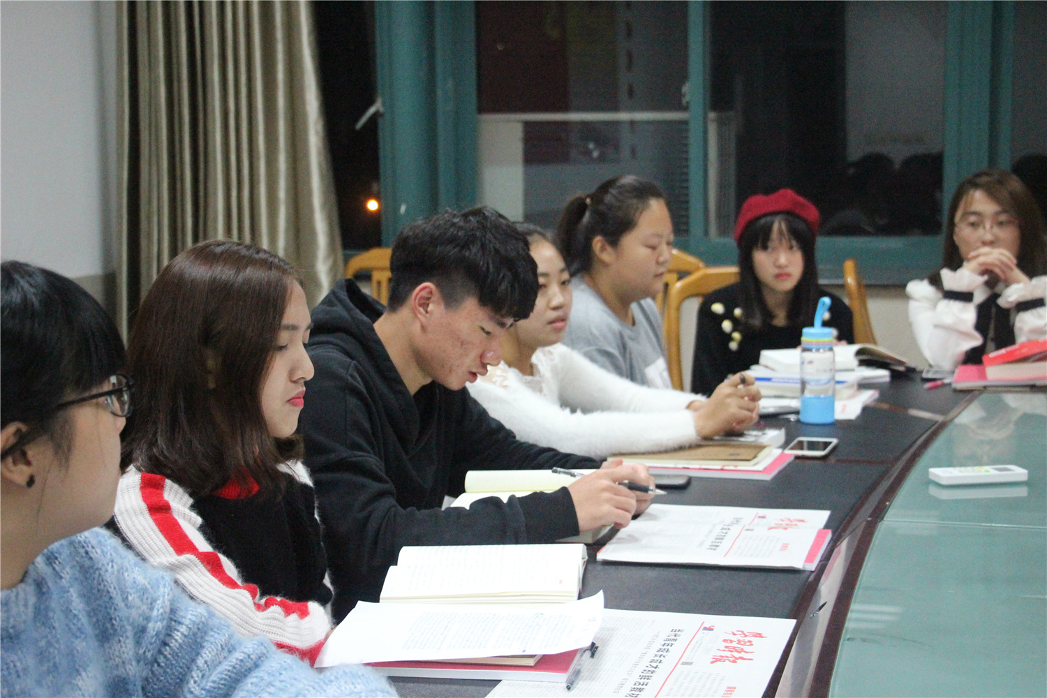 王化明向在座成员详细介绍了我校“青年学子学青年习近平”活动的开展历程,介绍了商学院在教育实践过程中所取得的一些优异成绩和有益做法。在近一年的时间里,商鹰学子积极参与学习教育实践,充分发扬了商学院作为“策源地”的走在前列的风采与风貌,整个学习教育活动在学院取得了良好的效果。书中青年习近平所经历的,是常人所不能接受的艰难险阻,但习近平总书记却依旧保持初心,前后连续10次提交入党申请书,这份恒心与毅力,是值得当下的我们学习的,也正是我们所缺失的。