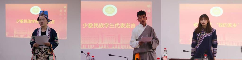泥巴影视 苗族学生王喜盖,藏族学生旦增桑珠,壮族学生付香玲、李柔,布依族学生罗思思、罗芷兰等分别发言,分享了大学生活的感悟,从“文化和旅游”角度,介绍了各自家乡的文化特色,并纷纷表示要维护民族团结,努力学习,将来建设好祖国和家乡。