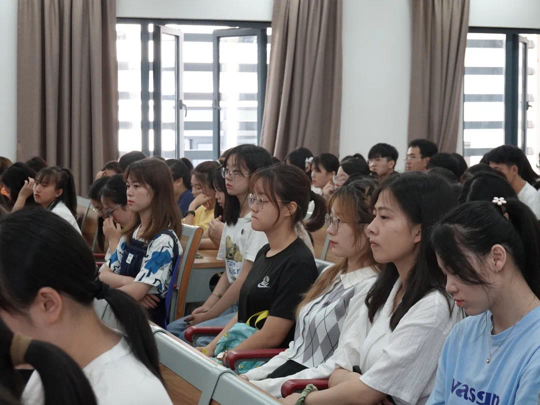 范芸芸从中共一大与“南湖红船”的故事入题,从“浙江”“外国语”“学院”三个关键词入手,引导青年学子守好“红色根脉”,勇担时代重任。宣讲中,她为同学们讲述了“跳出浙江,发展浙江”的开放发展理念,从“勇立潮头”到“重要窗口”,详细解读了与时俱进的浙江精神;从浙外的校史、教育国际化和发展战略定位等方面,提出新生要厚植家国情怀、拓宽国际视野;从“学”字展开,介绍了学院的发展重点,期盼新生立足于本学院、本专业的优势和特色,从国家、社会、行业、学校等多重维度审视并规划好大学生涯。她还希望新生积极参与“青年学子学青年习近平”学习教育,学思践悟青年习近平矢志不渝的理想信念、为国为民的家国情怀、勤奋好学的进取精神、吃苦耐劳的优秀品质。