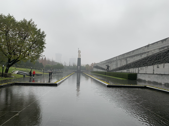 当天南京下起了丝丝细雨,就像苍天哭泣。纪念馆广场上的系列铜像无声地诉说着那段不堪回首的岁月,全体党员参观了侵华日军南京大屠杀遇难同胞纪念馆、万人坑遗址、遇难同胞遗骨陈列馆、主题教育馆。一张张珍贵的照片、一段段感人的故事、一个个壮烈的事迹、一次次揪心之痛,深深地震撼着在场每一位同学的心灵。在纪念馆的广场上,师生党员将花圈敬献于“灾难墙”前,全体党员重温入党誓词,以这样一种特殊的形式悼念在南京大屠杀中的遇难同胞,更加坚定了铭记历史,珍爱和平,努力学习、报效祖国的信心与决心。