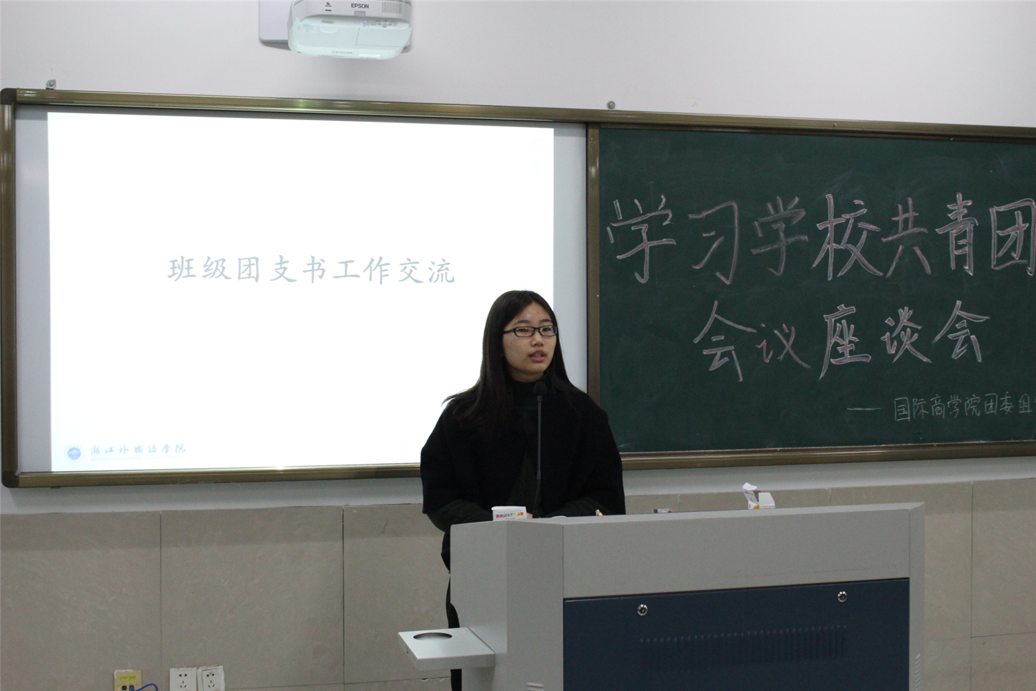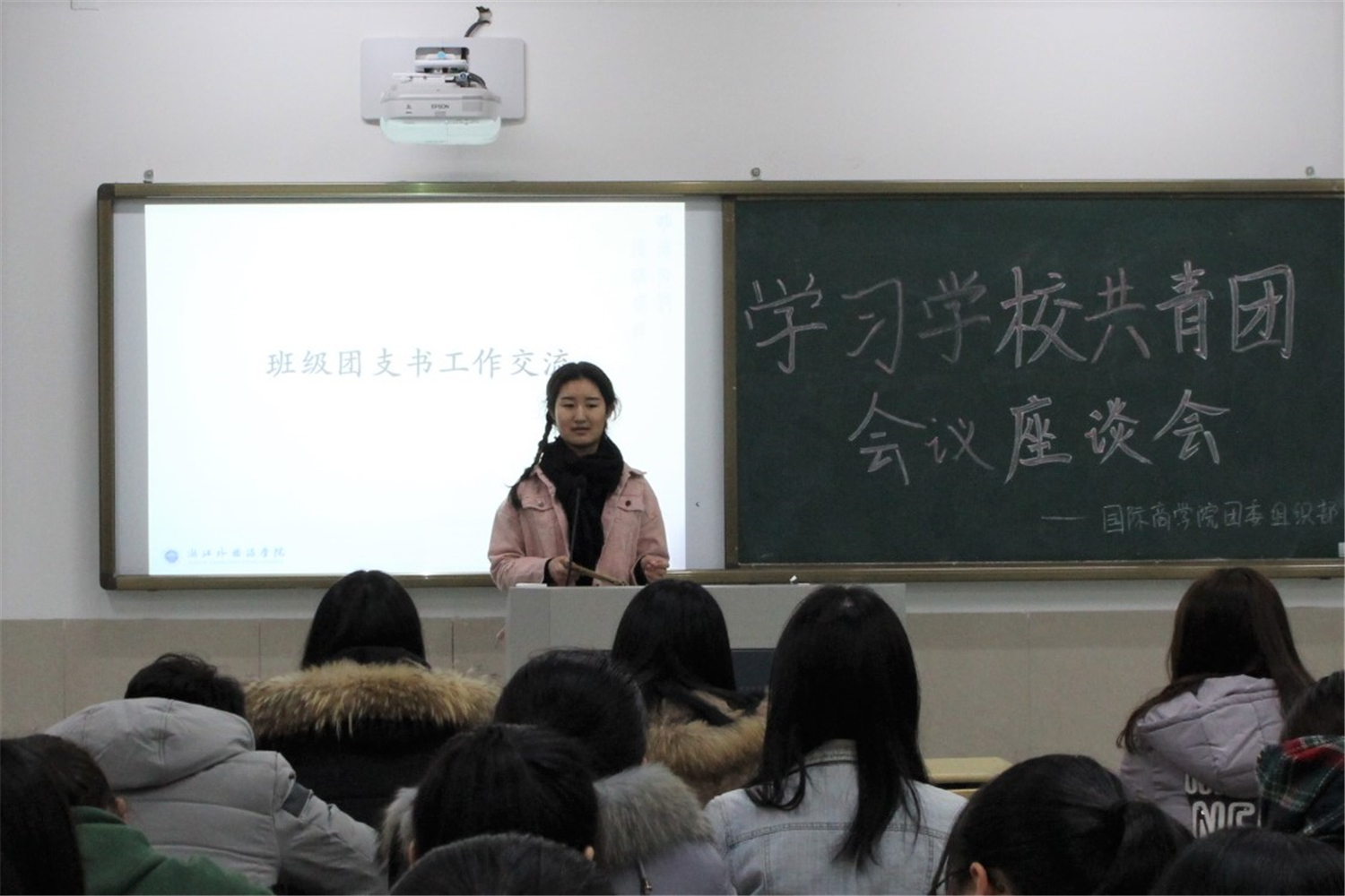 座谈会期间,15旅游管理1、2、3、4班团支书就班级团建及团活动进行了工作交流,15旅游管理1班团支书张子颖说,做好团的工作,关键在于团支部委员合理分工,同力协作。15旅游管理2班团支书阮佳楠说,团日活动开展要注意程序,活动开始前要征集全班团员意见,听取辅导员和班主任的建议,然后班级对活动方案进行头票,这样的团日活动才能有更多的团员参加。15旅游管理3班团支书姜心宇说,班报其实是留存给我们的青春记忆,以这样的心态去做班报,你会发现班报其实很有意思。15旅游管理4班团支书李敏说,如何管理好班级团员,关键要把团章、团的纪律挺在前面,团干部要发挥模范带头作用。团支书之间互相汲取经验,更好的进行班级团员工作管理。